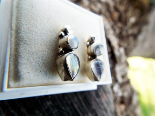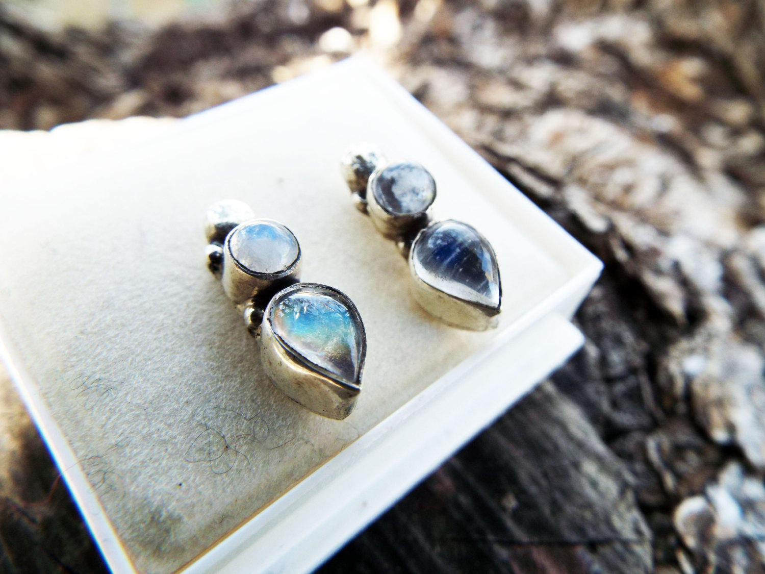 Embrace moonstone’s magical energies with this handmade pair of studs! They’ve been handmade with sterling 925 silver and brilliant moonstone. The earrings have an easy sterling silver ‘butterfly’ fastening. The measurements are as follows: