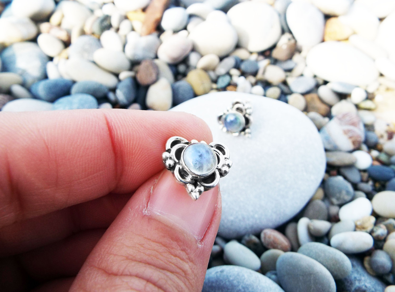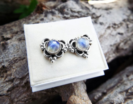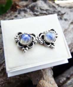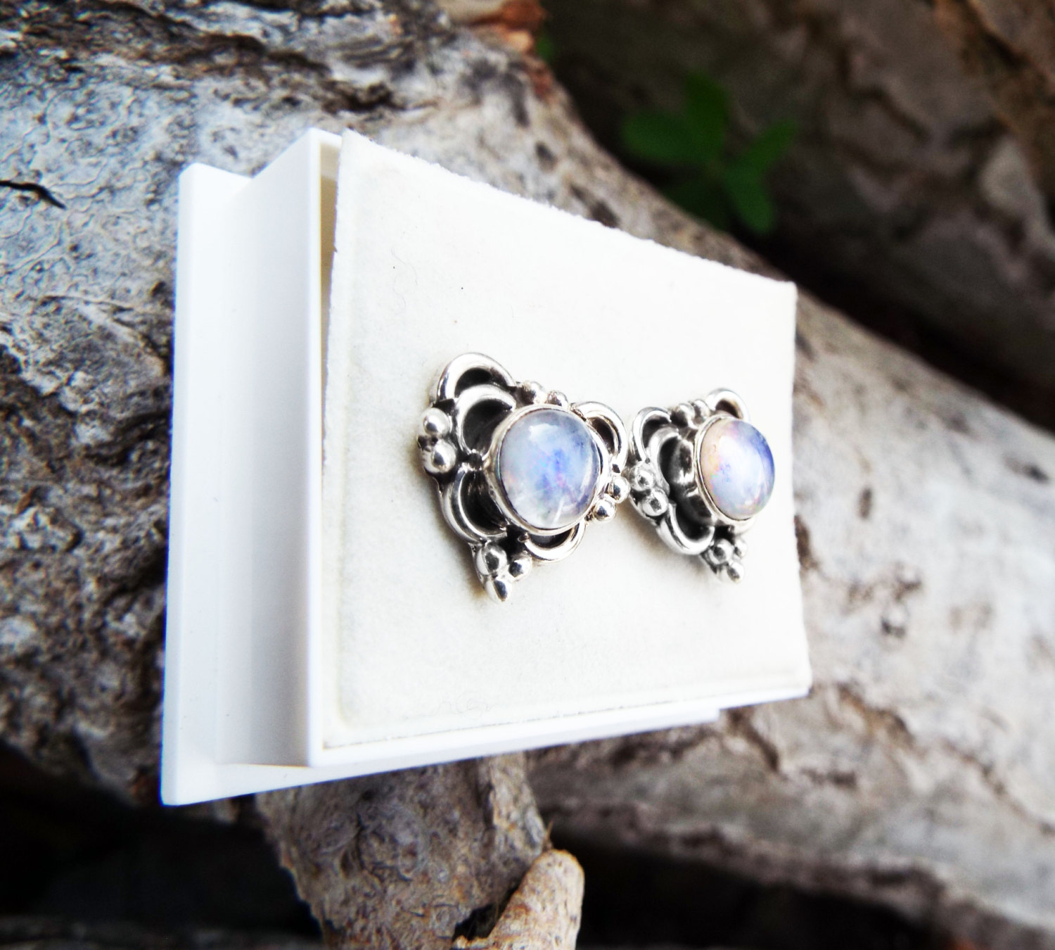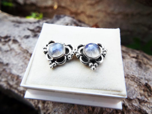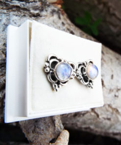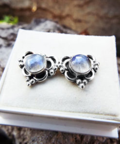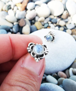 Embrace moonstone’s magical energies with this handmade pair of studs! They’ve been handmade with sterling 925 silver and brilliant moonstone. The earrings have an easy sterling silver ‘butterfly’ fastening. The measurements are as follows: