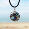 The piece will be sent with an adjustable black cotton strap but it also looks great with a silver chain.