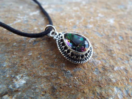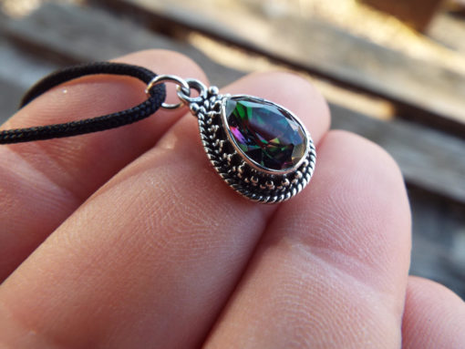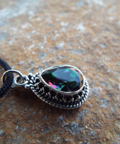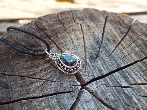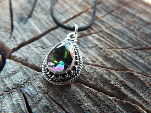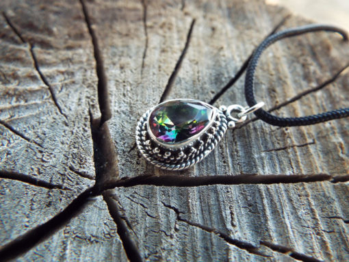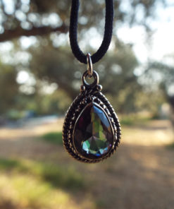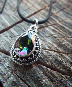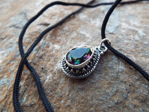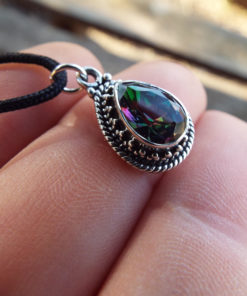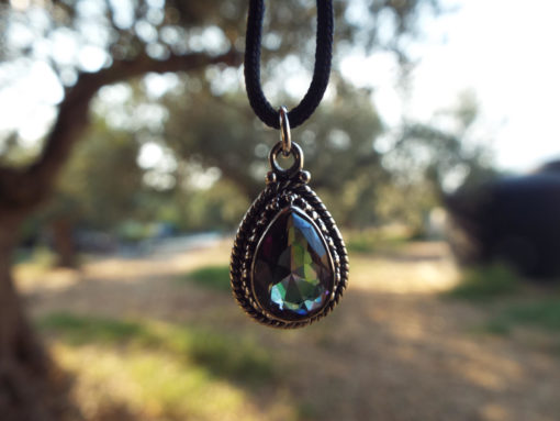 Embrace the magical mystic quartz with this handmade pendant! It’s made of sterling 925 silver which sits as a border of coils around the brilliant stone. The measurements are as follows: