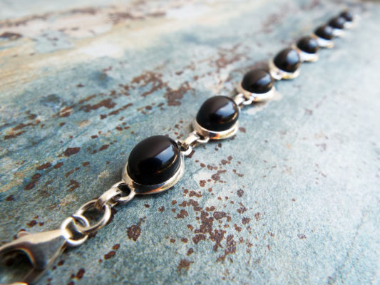 Onyx jewelry is worn to defend against negativity that is directed at you. Black stones have protective energies in the sense that black is the absence of light, and therefore, can be used to create invisibility.