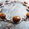 The bracelet has a sterling silver adjustable chain with a clasp.