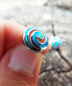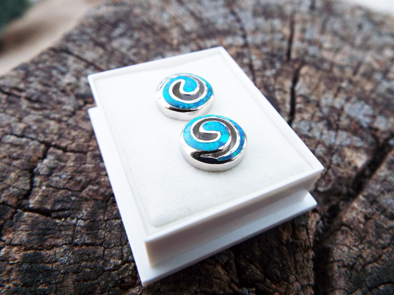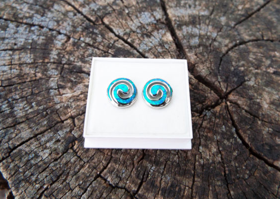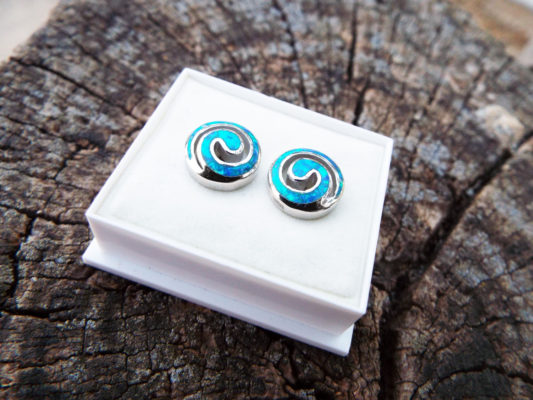 Embrace Opal’s amazing qualities with this handmade pair of studs. They’re handmade of sterling 925 silver and brilliant opal which constantly changes shade in the light. The earrings have a sturdy sterling silver ‘butterfly’ fastening. The measurements are as follows:
