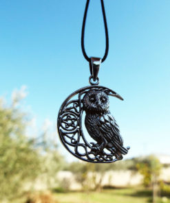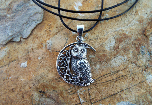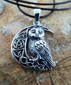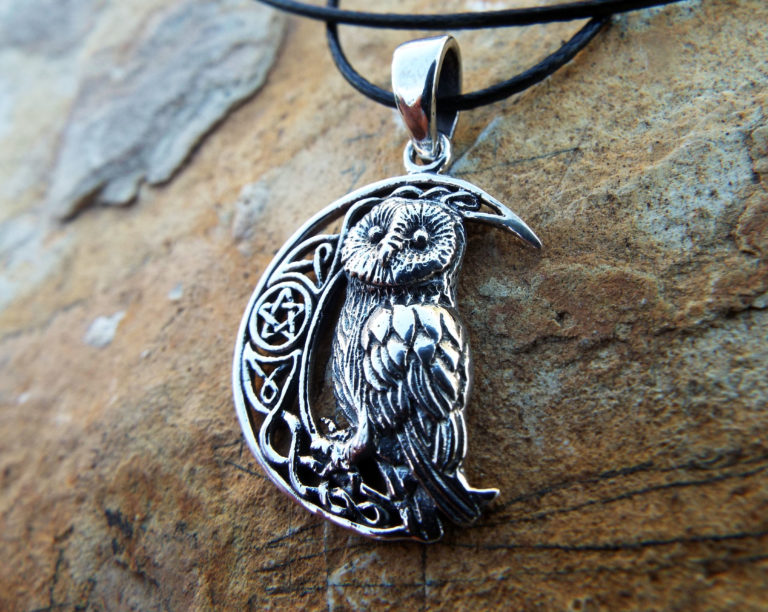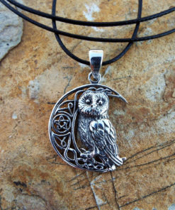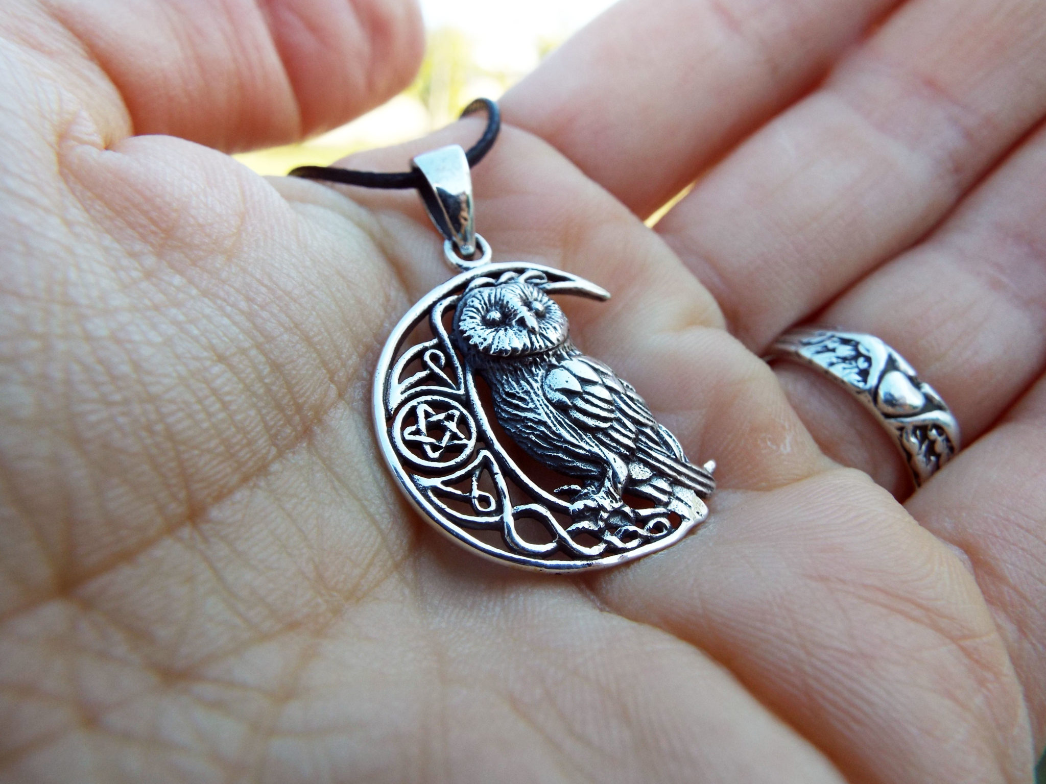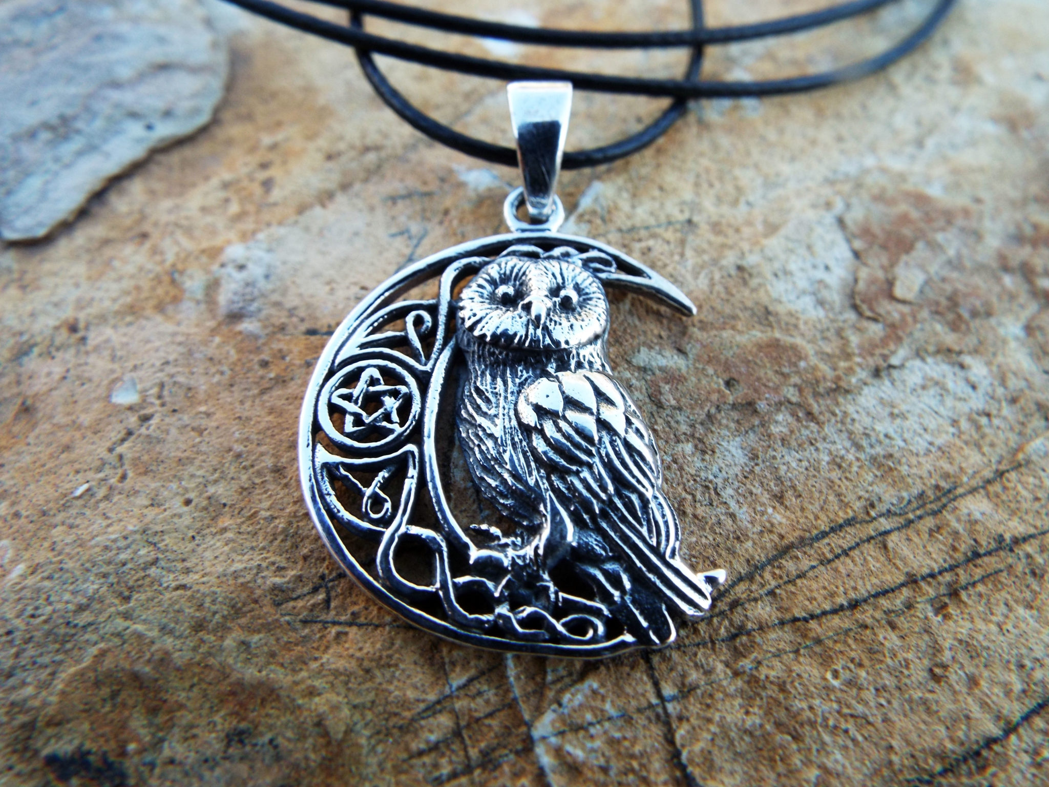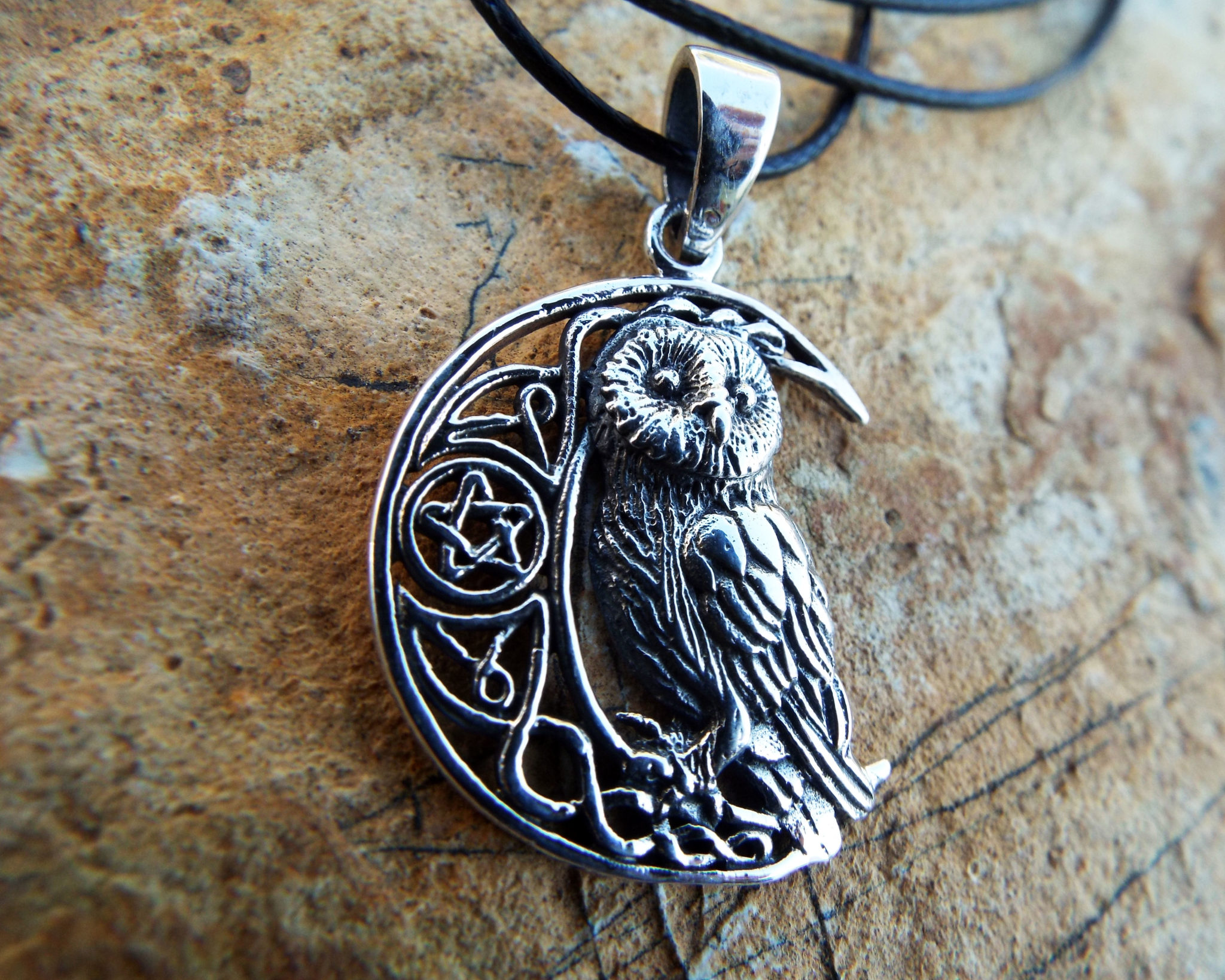 Owl Pendant Moon Sterling Silver 925 Handmade Necklace Pentagram Jewelry