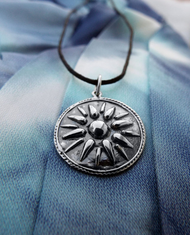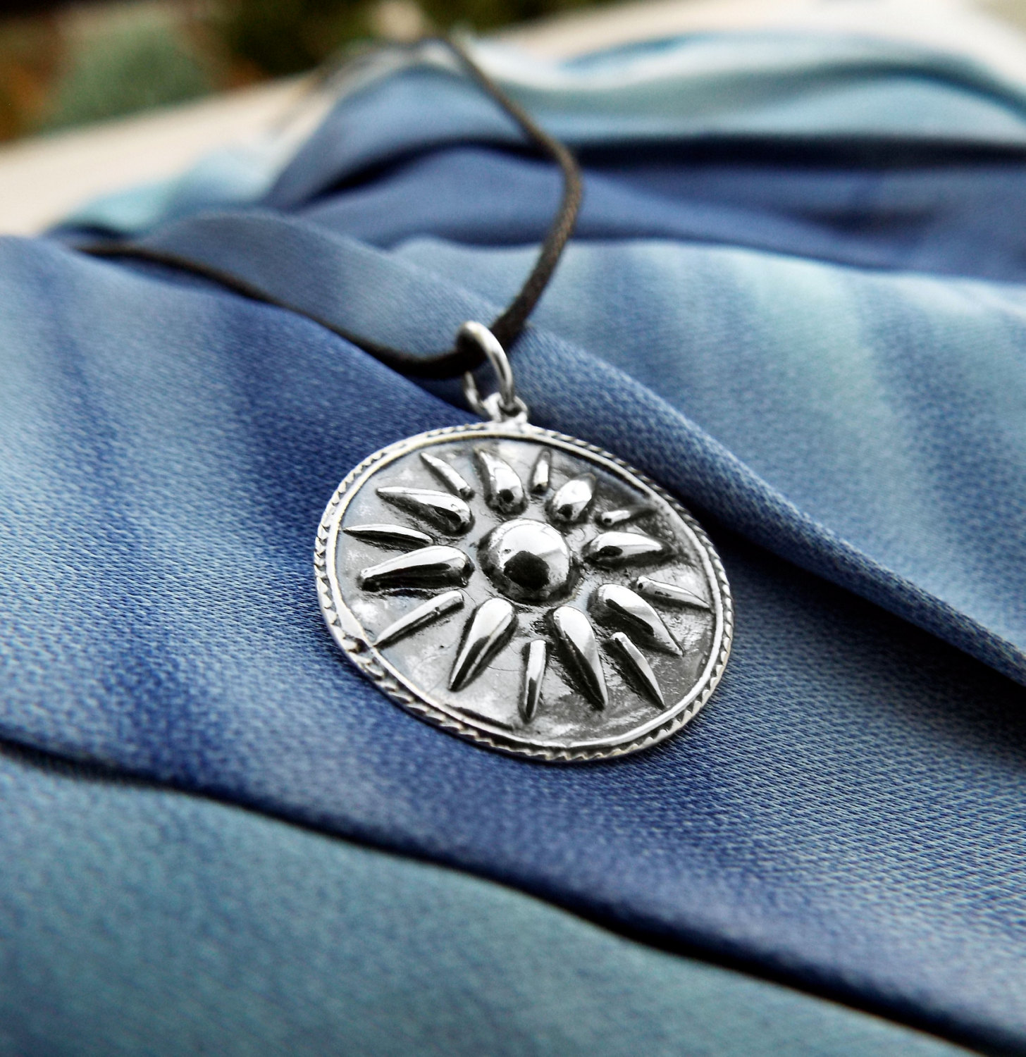 This pendant has been handmade from sterling 925 silver, and a handcarved Vergina Sun symbol has been placed in the centre, with a border around the edge to highlight its rays. Embrace your inner strength through the powerful Ancient Greek symbol! The measurements are as follows: