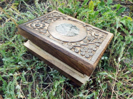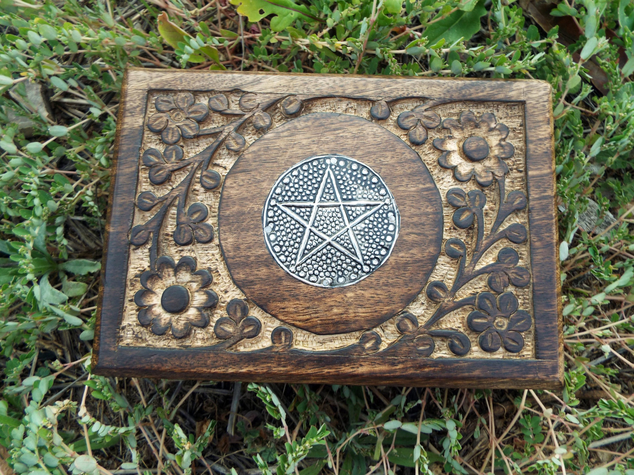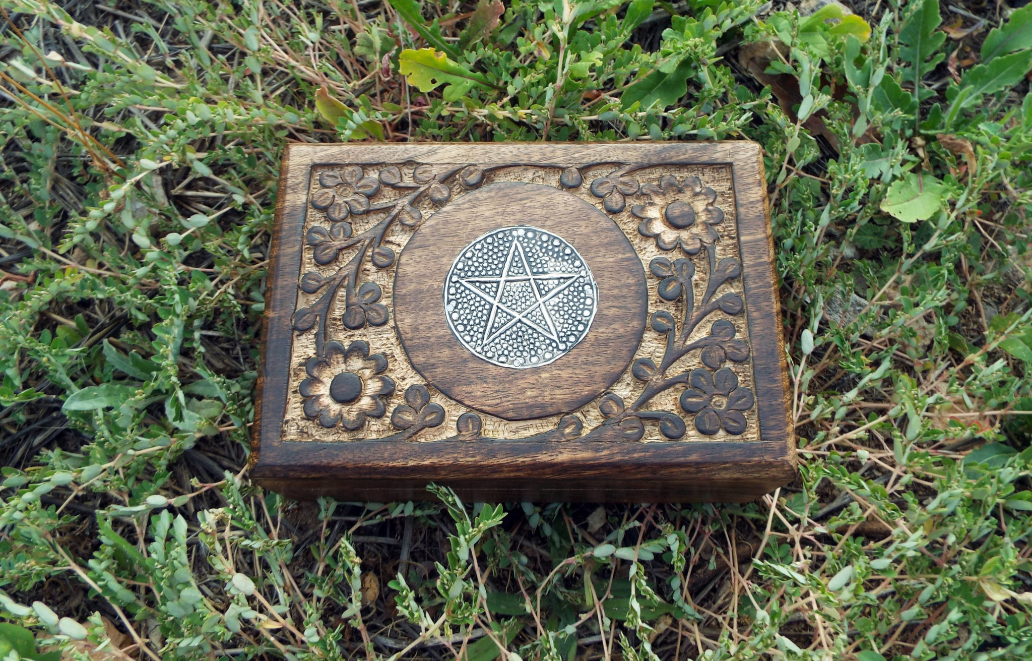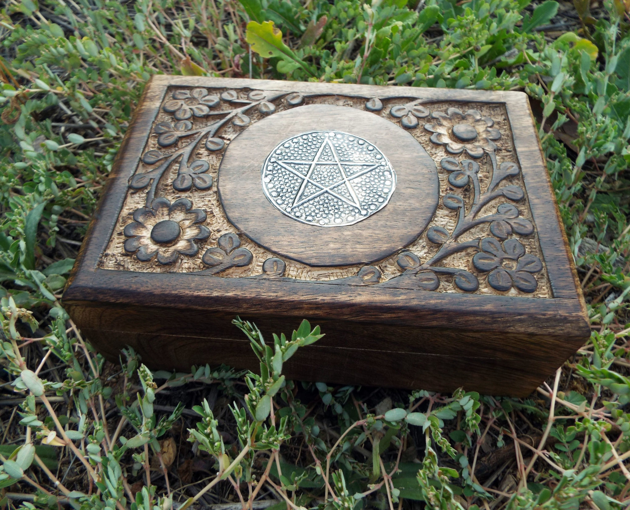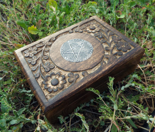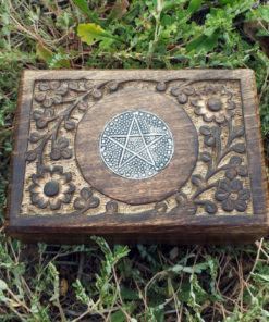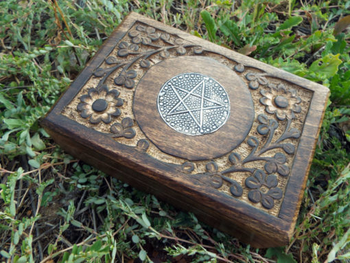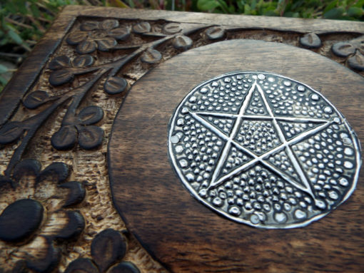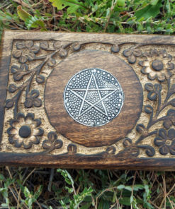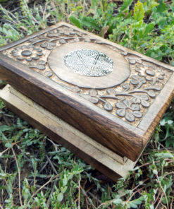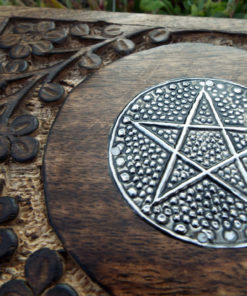 The circled pentagram symbolises eternity and infinity, the cycles of life and nature. This beautiful handmade box is hand carved and made from Mango Tree Wood which is eco-friendly for the following reasons: