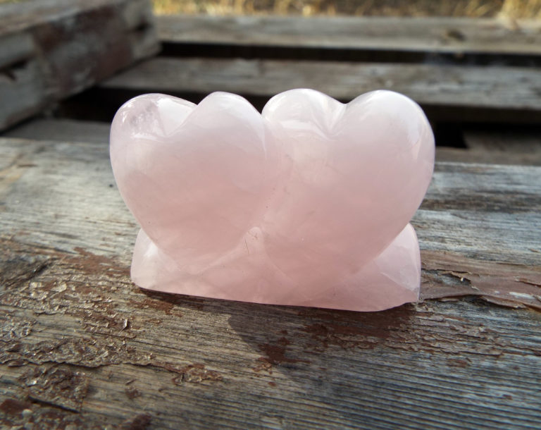 Embrace love in your life with this handmade rose quartz sculpture! It’s made from polished rose quartz and depicts two beautiful hearts.