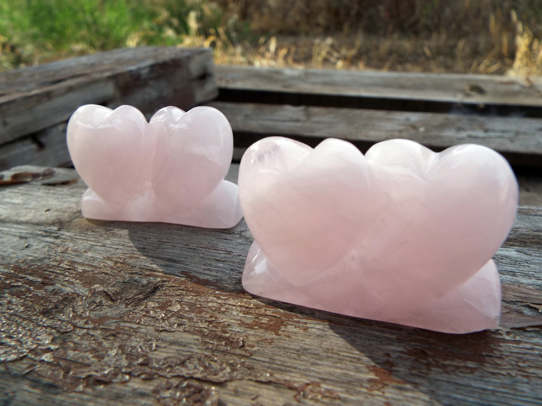 Rose Quartz Hearts Gemstone Sculpture Figurine Love