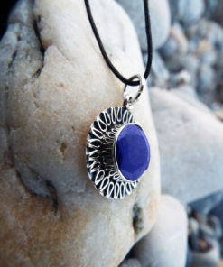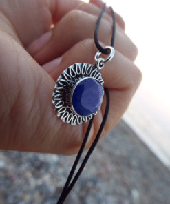 Embrace the wisdom and holiness of Sapphire with this handmade pendant! It's made of sterling 925 silver which sits as an intricate border around the brilliant gem. The measurements are as follows: