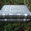 Embrace your own flower-power with this handmade box! It’s made from silver aluminum and has been lined with velvet.