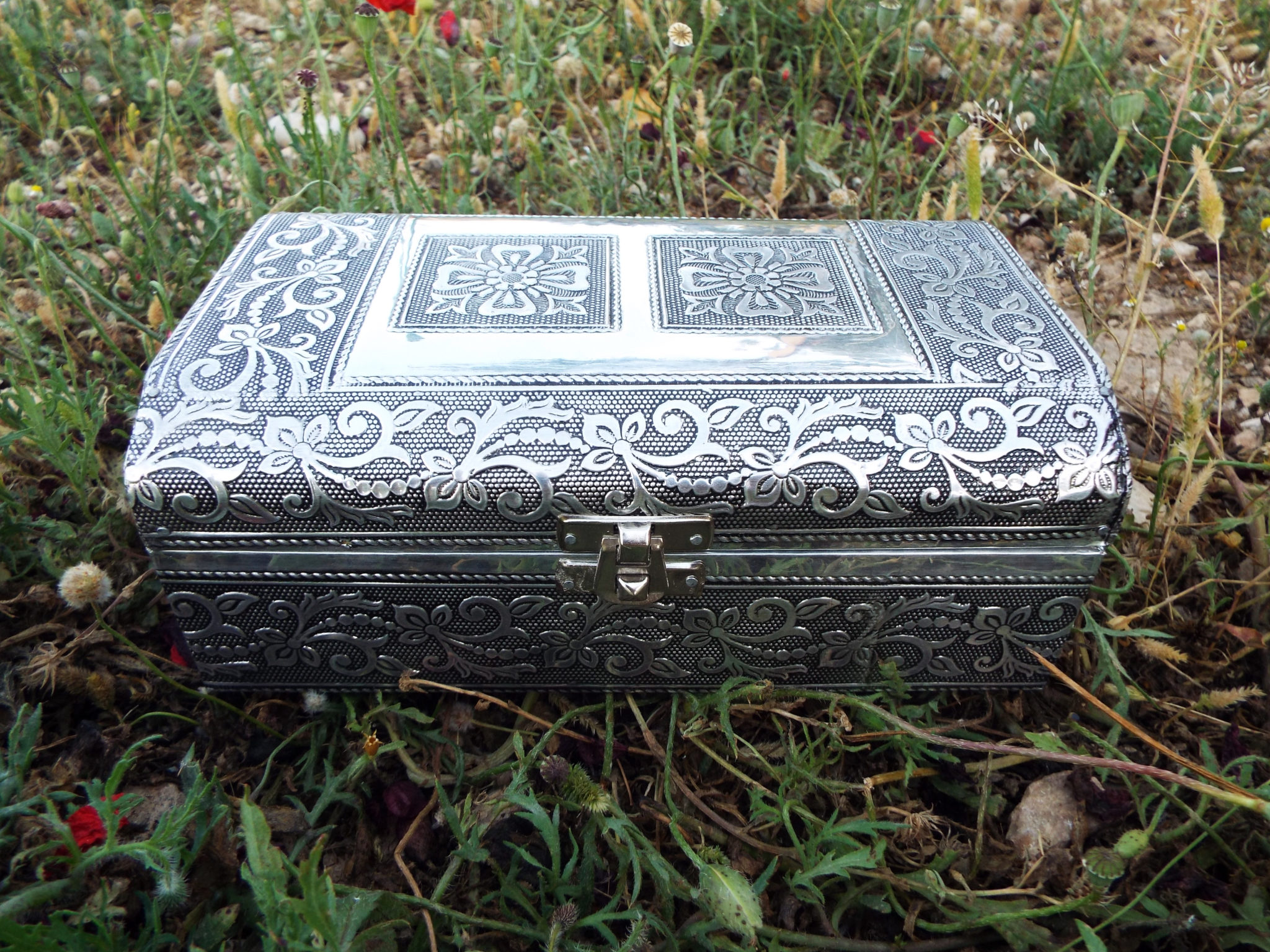 Categories: All Boxes, Trinket Boxes Tags: aluminum, box, chest, floral, flower, handmade, jewelry, silver, trinket, velvet, κουτι, λουλουδι, μεταλλο