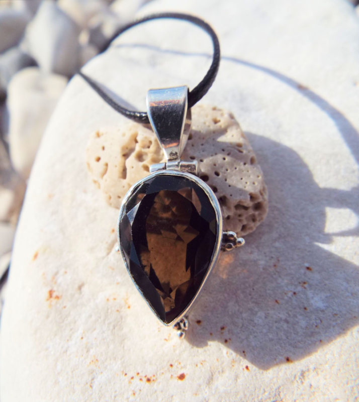 Embrace smokey quartz's amazing energies with this handmade pendant! It's made of sterling 925 silver and a teardrop-shaped brilliant dark quartz.