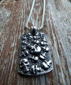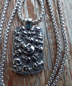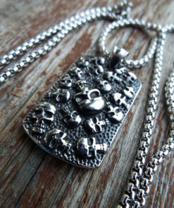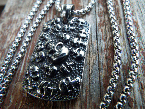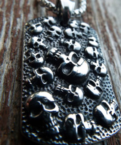 Embrace the darkness of the skull with this handmade pendant! It’s made of silver stainless steel which is incredibly solid so one has no fear of breakage or indentation. Also stainless steel never tarnishes and isn’t affected by the elements (fresh water, alcohol, air, seawater).