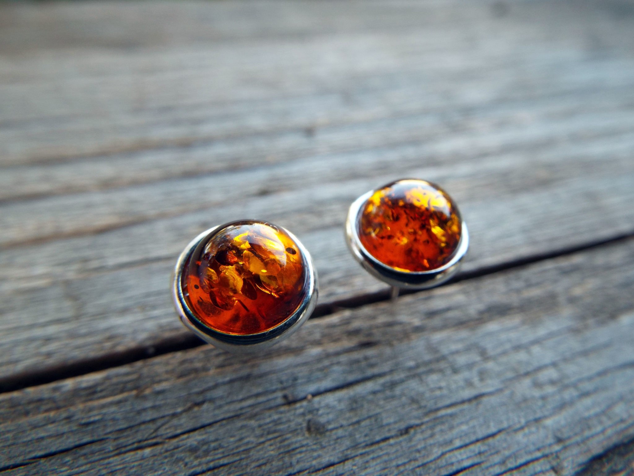 Embrace amber’s amazing energies with this beautiful pair of studs! They’re handmade of sterling silver 925 and bright auburn amber. The earrings have an easy sterling silver ‘butterfly’ fastening.