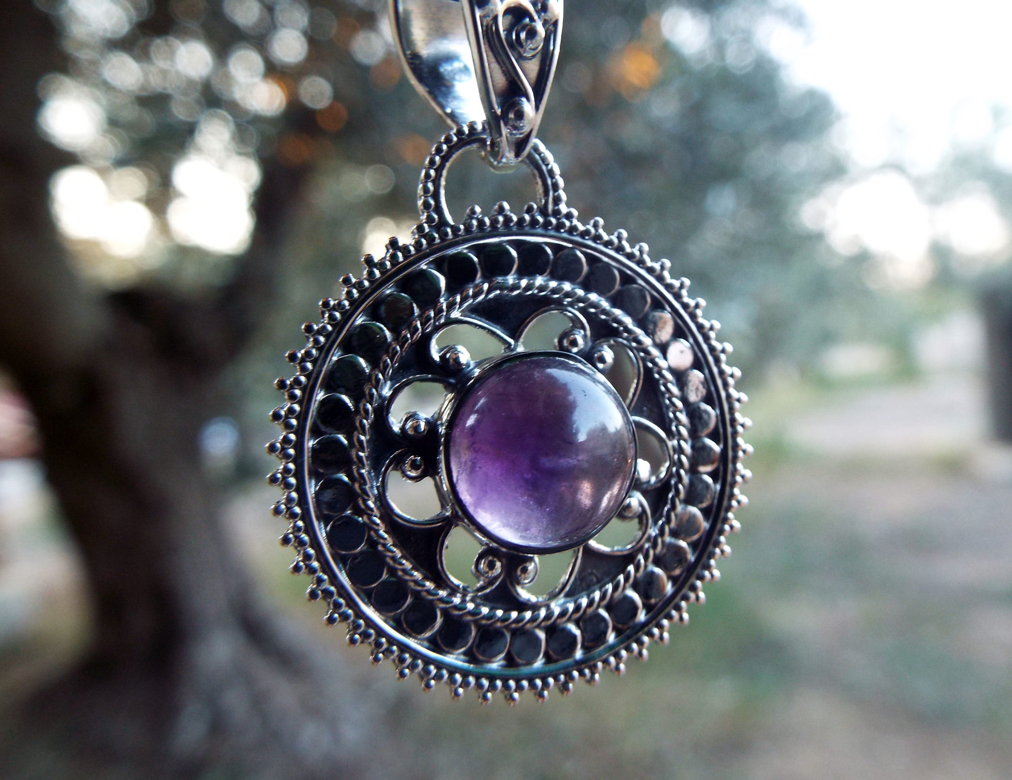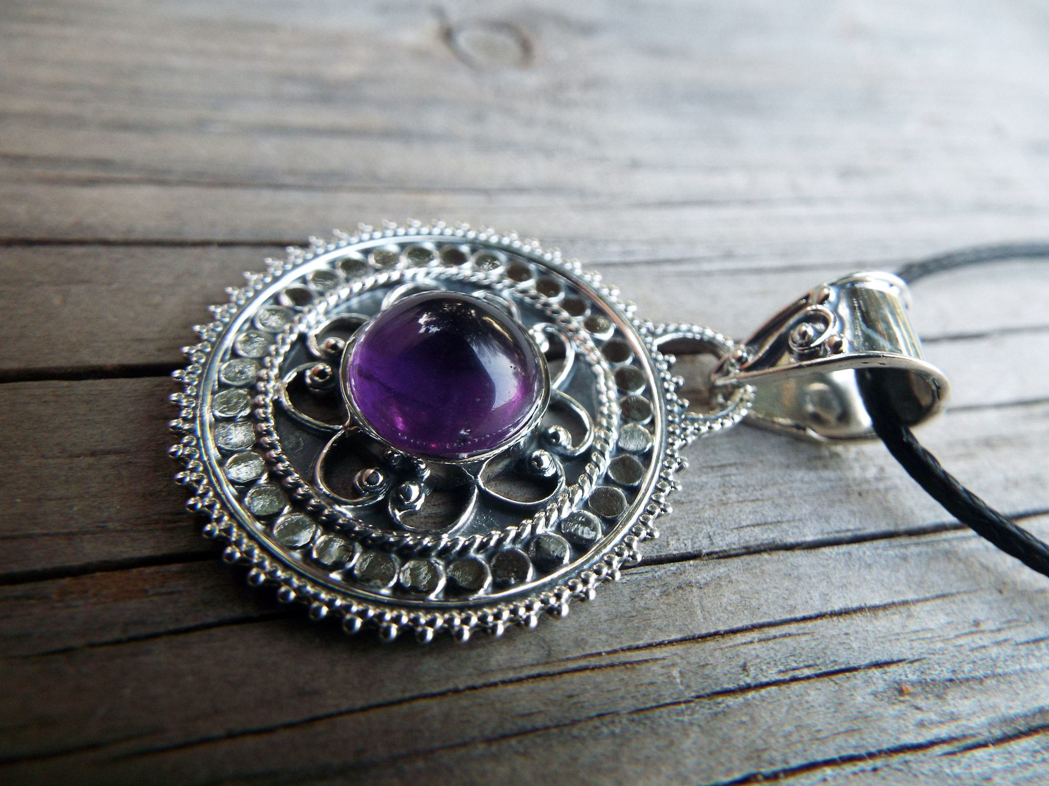 Embrace amethyst’s calm energies with this handmade pendant! It’s made of brilliant purple amethyst and sterling silver 925.
