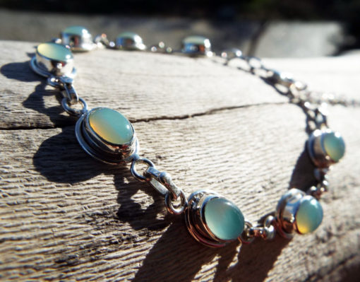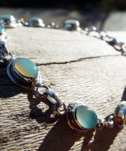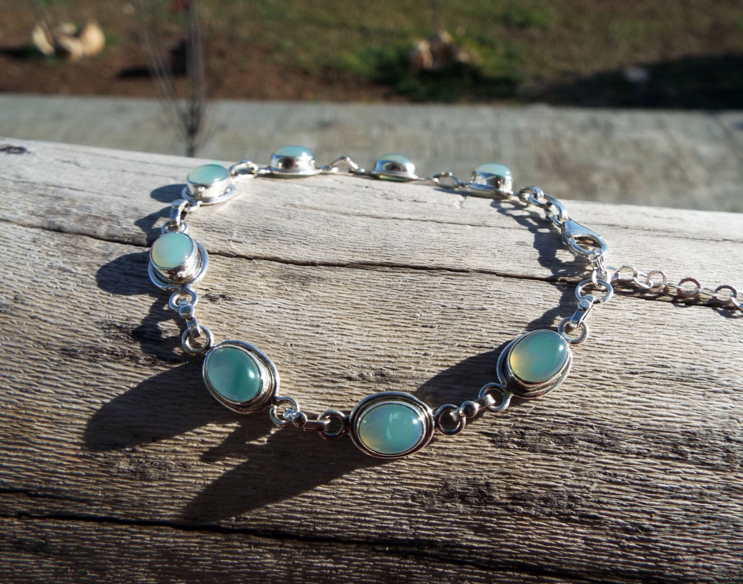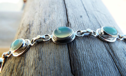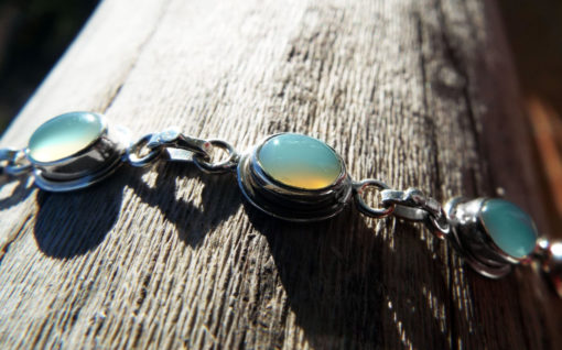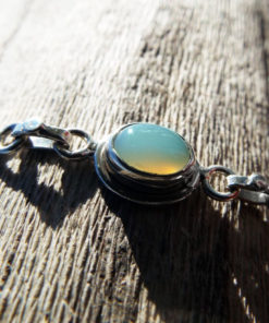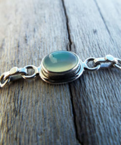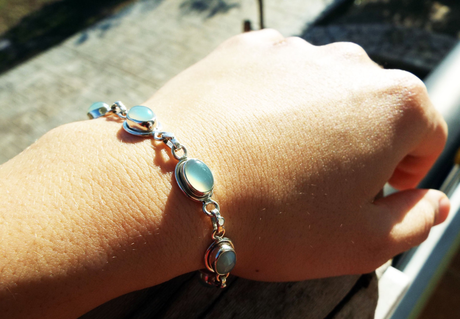 The bracelet has a sterling silver adjustable chain with a clasp.