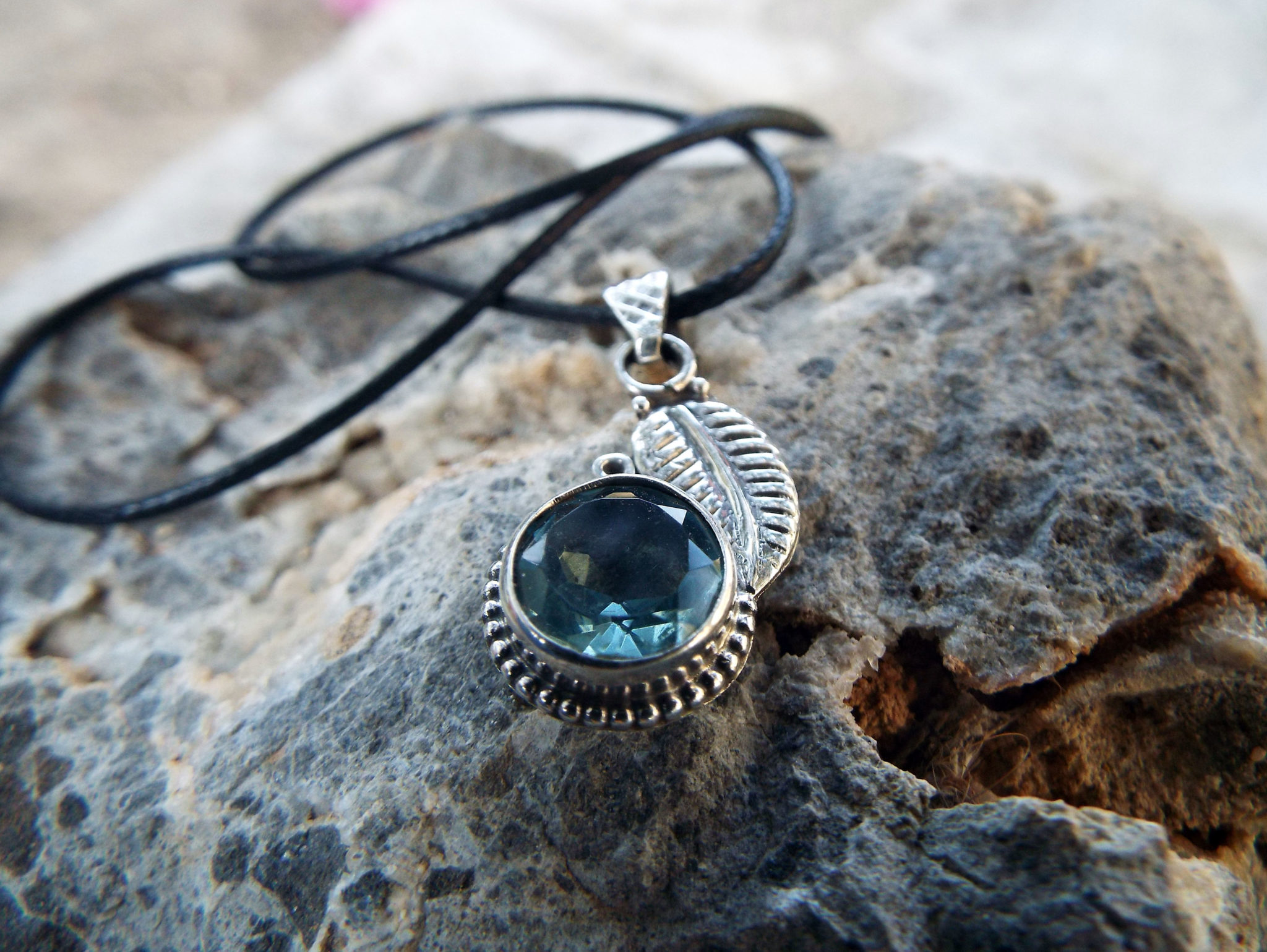 Sandstone Pendant Pendulum Silver Handmade Necklace Sterling 925 Blue Gemstone Vintage Antique DarkSandstone Pendant Pendulum Silver Handmade Necklace Sterling 925 Blue Gemstone Vintage Antique Dark