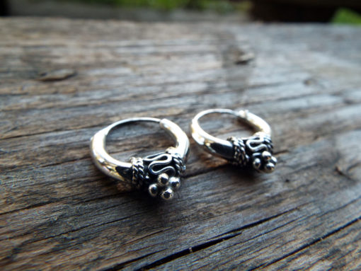 Hoop Earrings Sterling Silver 925 Bali Balinese Tribal Handmade Jewelry Traditional