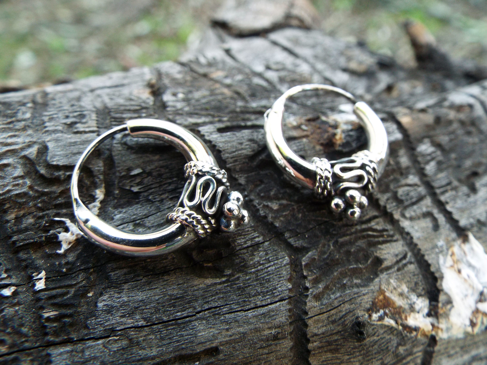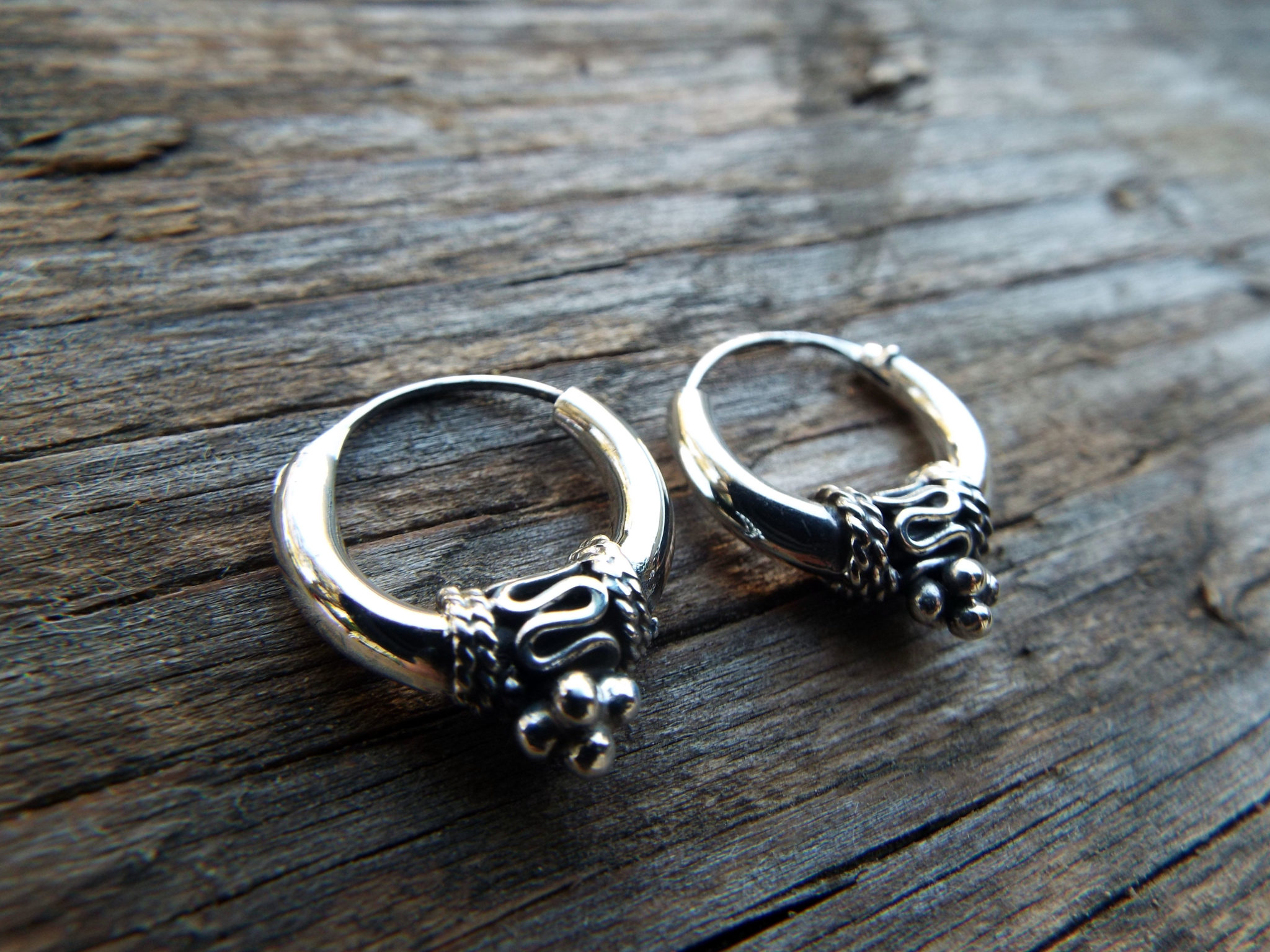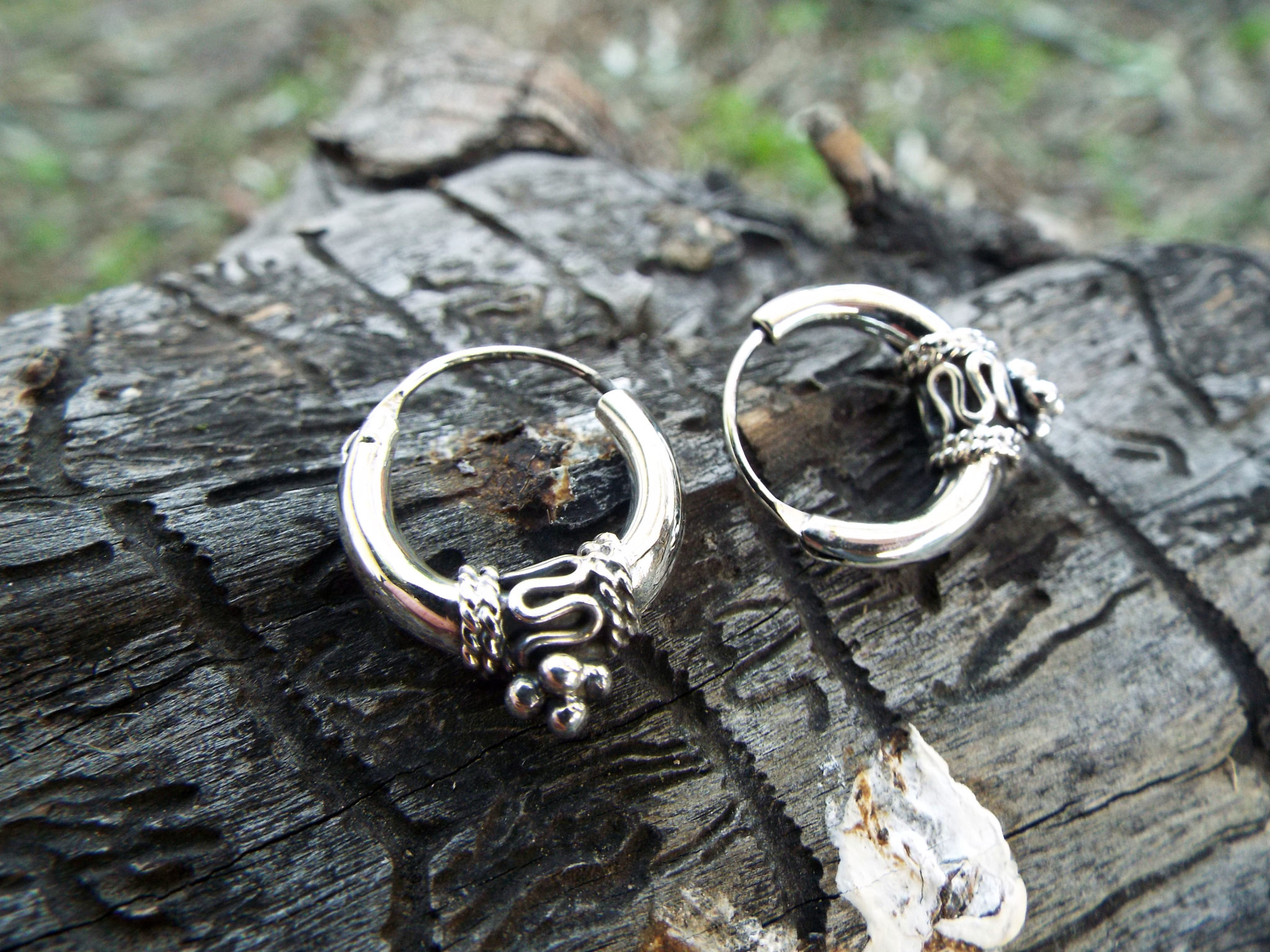 Hoop Earrings Silver Bali Balinese Sterling 925 Tribal Handmade Jewelry Classic TraditionalHoop Earrings Silver Bali Balinese Sterling 925 Tribal Handmade Jewelry Classic Traditional