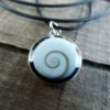 The piece will be sent with an adjustable black cotton strap, but it looks great with a silver chain.