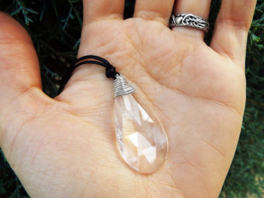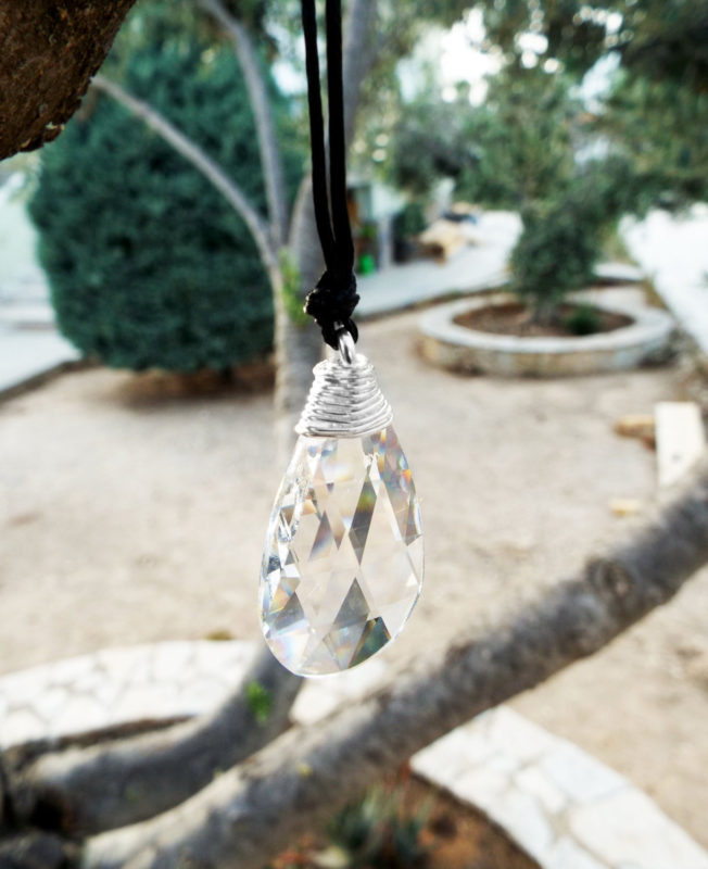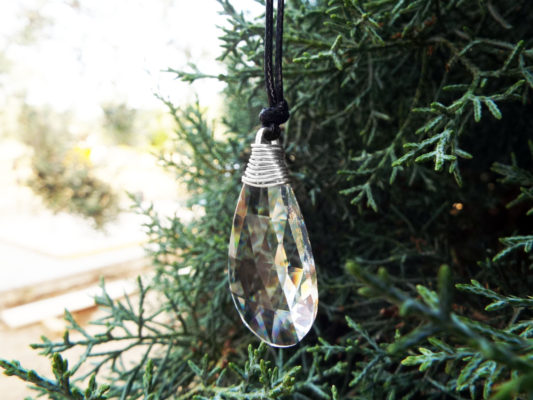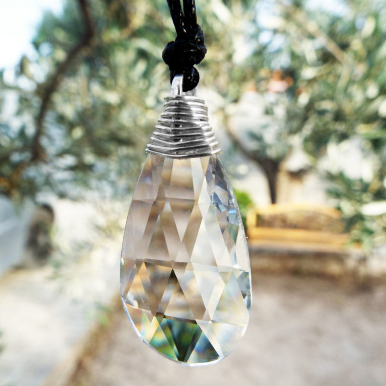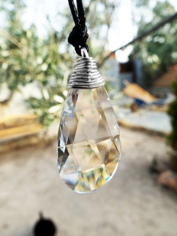 Embrace the clarity and magic of the clear crystal with this handmade piece! It's made of brilliant clear crystal, hand-wrapped with sterling 925 silver wire.