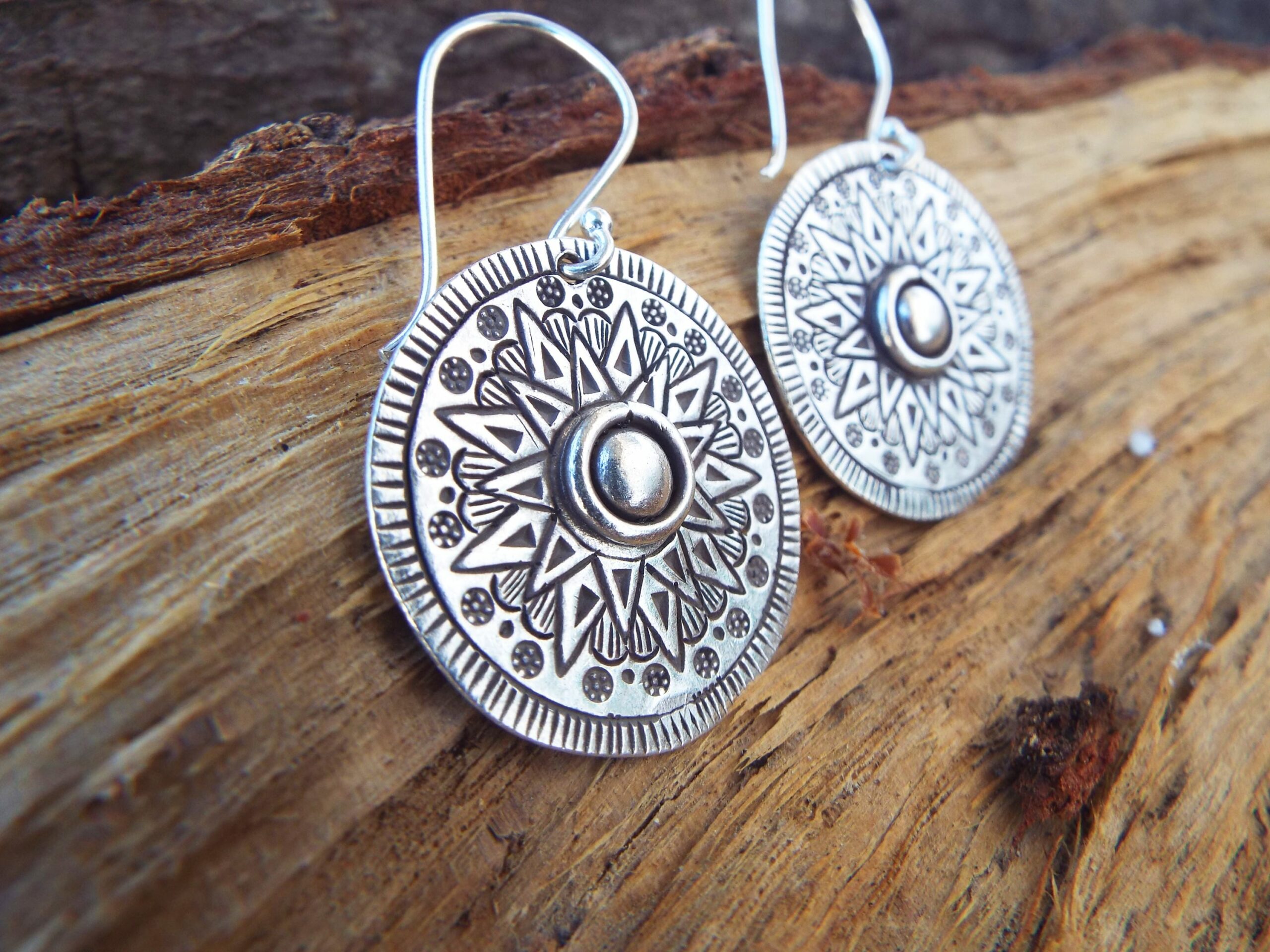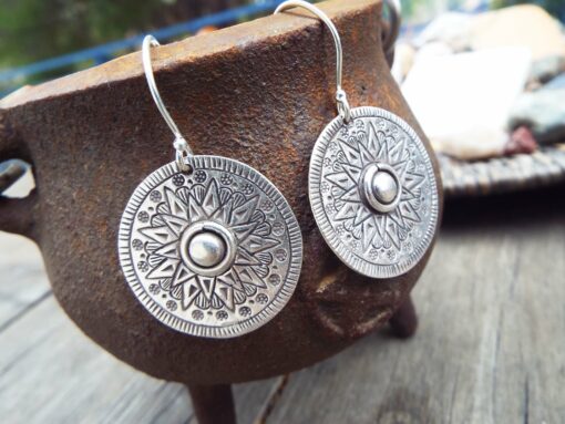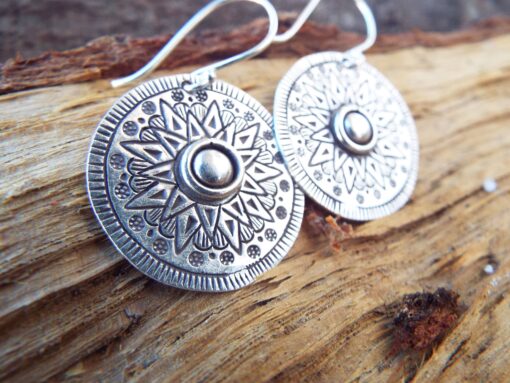 Phaistos Disk Earrings Silver Stainless Steel Handmade Jewelry
