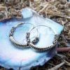 These traditional hoops have been handmade using sterling 925 silver, and depict a Balinese classic design which dates back to centuries of existence. The traditional silver work creates an authentic, tribal pair of earrings which can be worn on every occasion. The hoops measure: