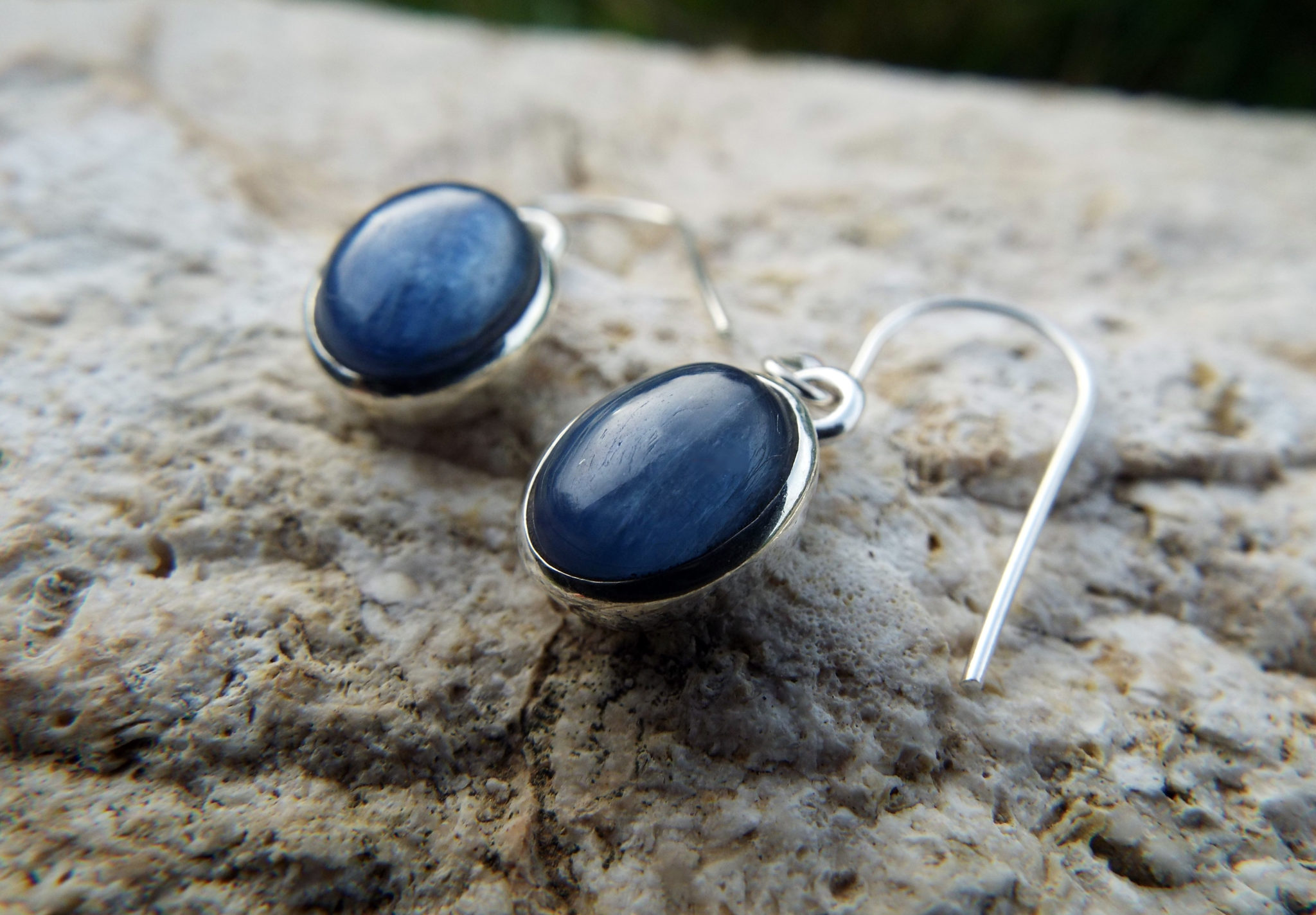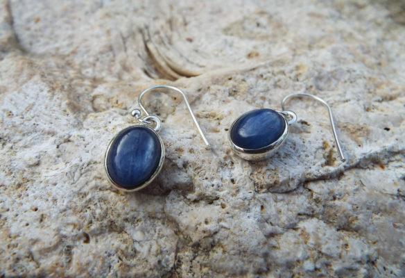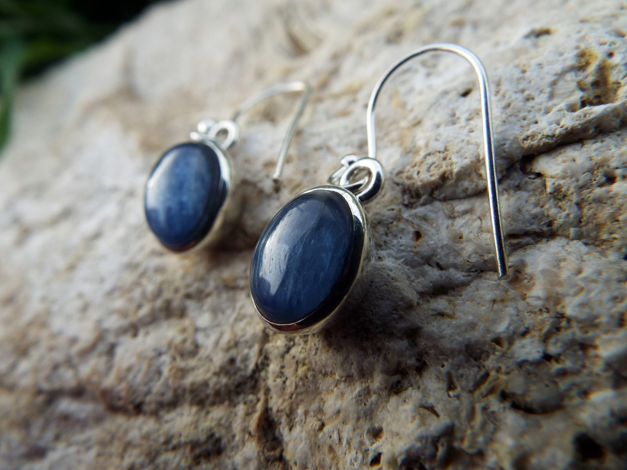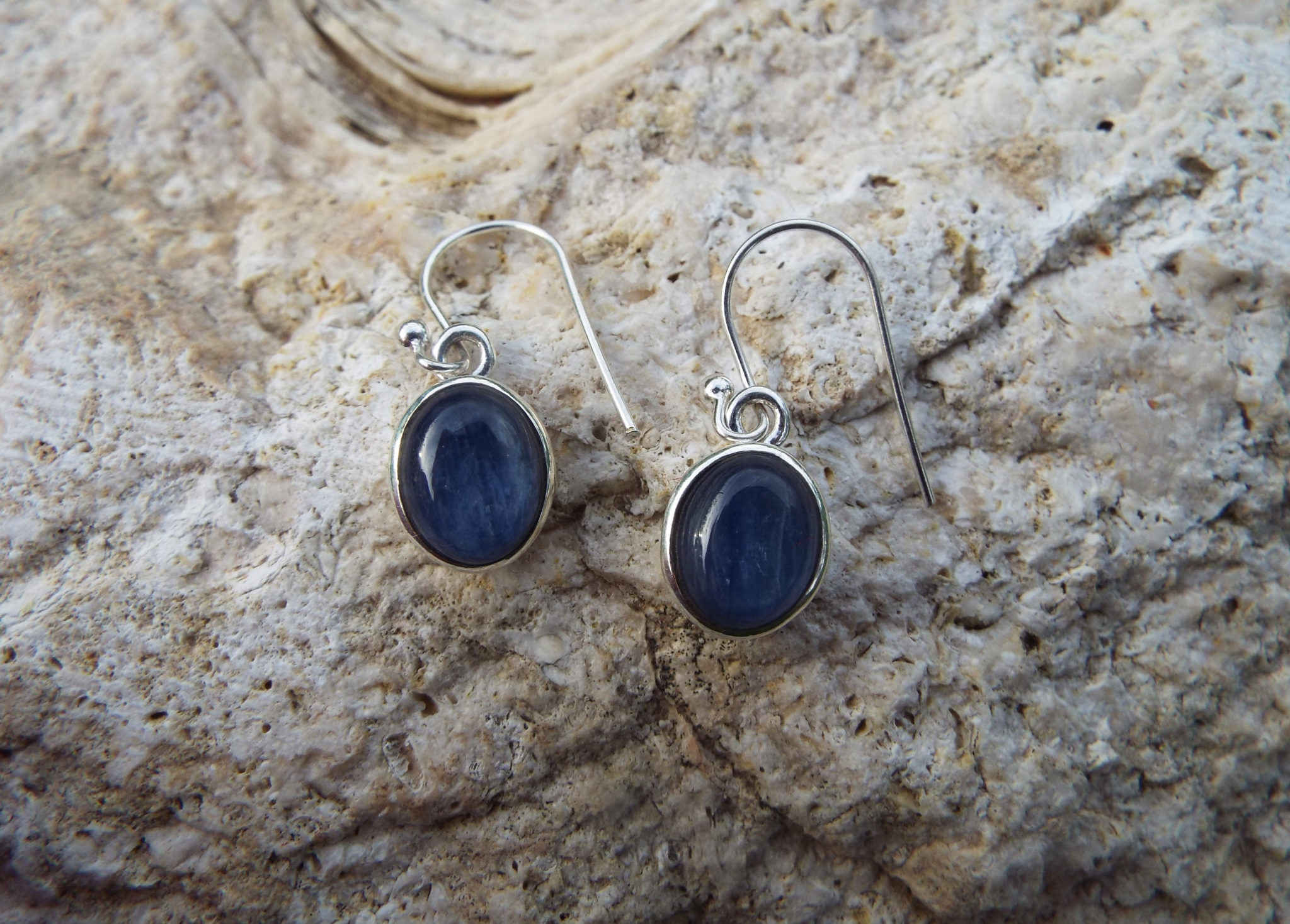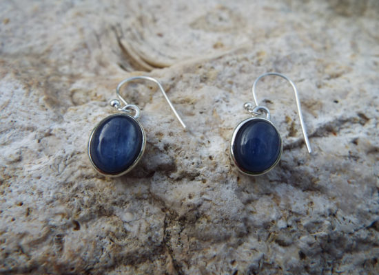 Embrace kyanite’s amazing energies with this beautiful pair of drop earrings! They’ve been handmade with sterling silver 925 and deep ocean-like kyanite.