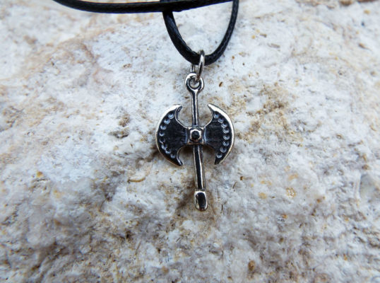 Minoan labrys has been used as a ritual axe, found in ancient Minoan depictions of the Mother Goddess. Its symbolism is related to the labyrinth and it is believed that the meaning of the worl labyrinth is the “house of the double axe”. Labrys was used by female priestesses only, for bull sacrifices.