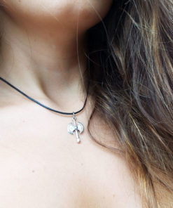 The pendant will be sent with an adjustable black cotton strap but it also looks great with a silver chain.