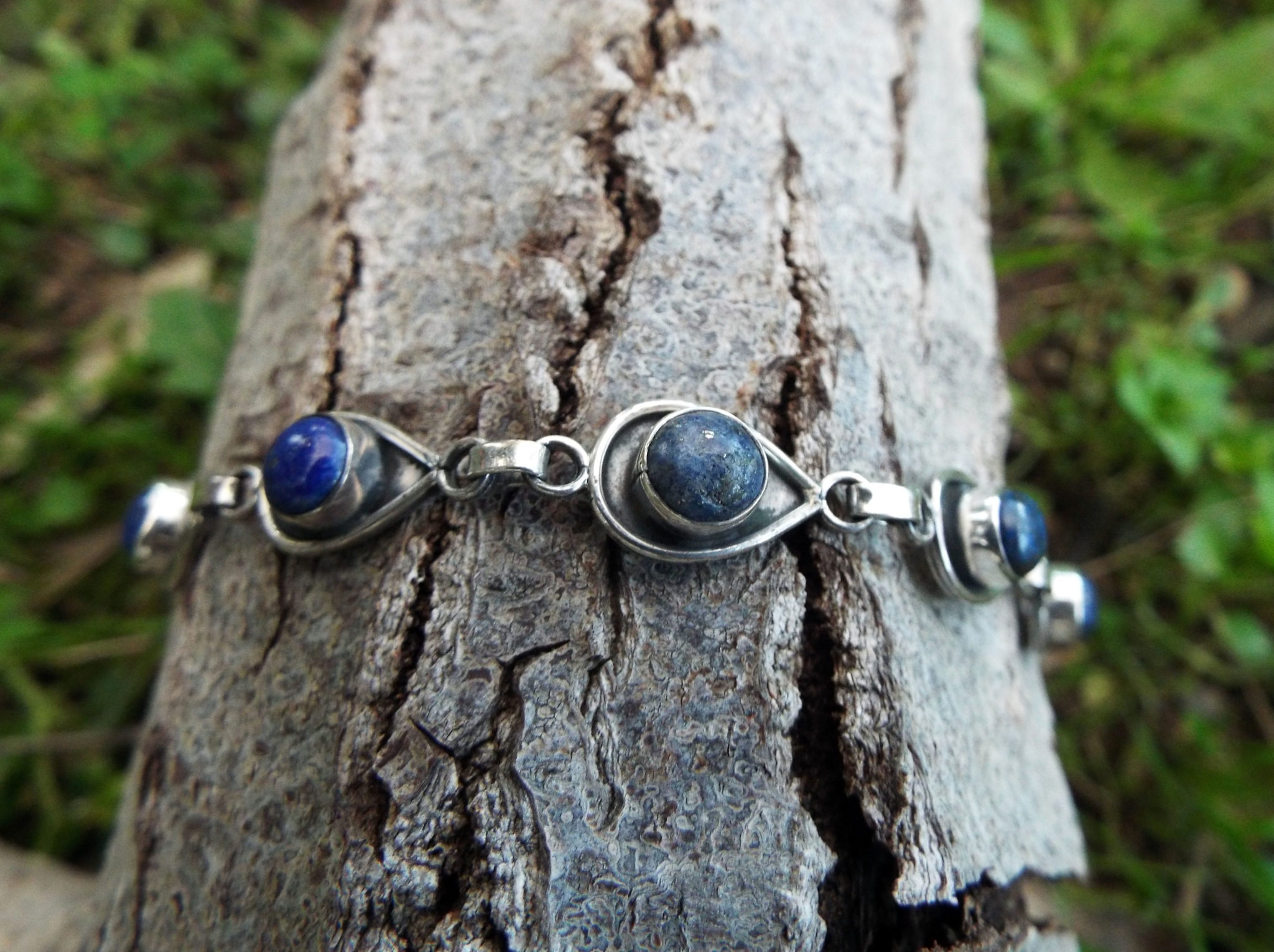 Sterling Silver Lapis Lazuli Bracelet Handmade Jewelry