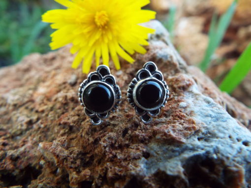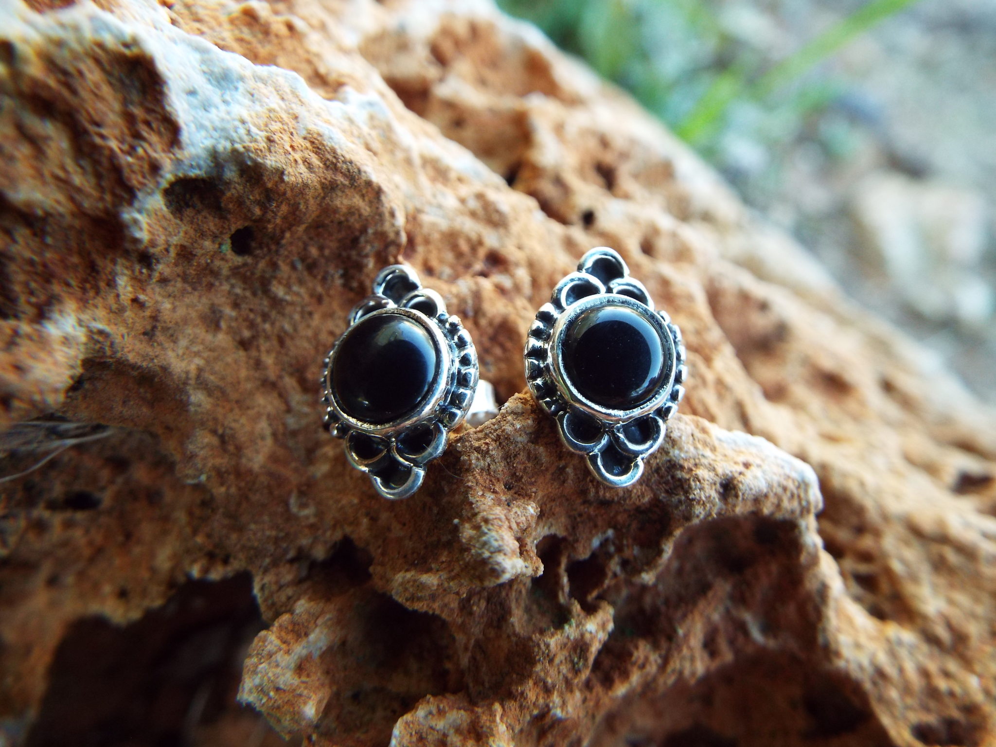 Sterling Silver Onyx Earrings Studs Handmade Jewelry