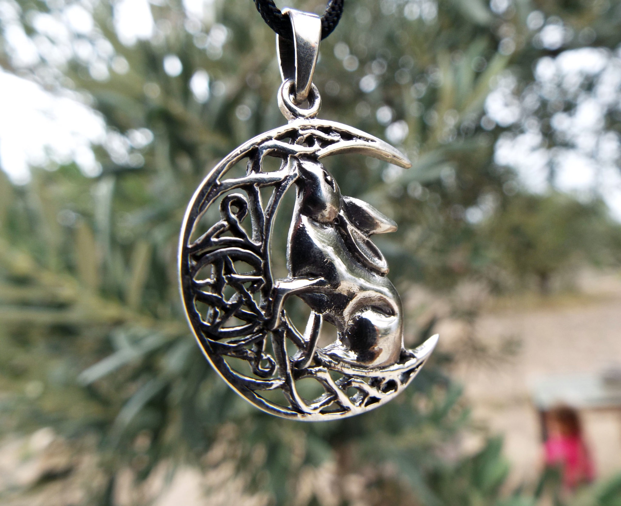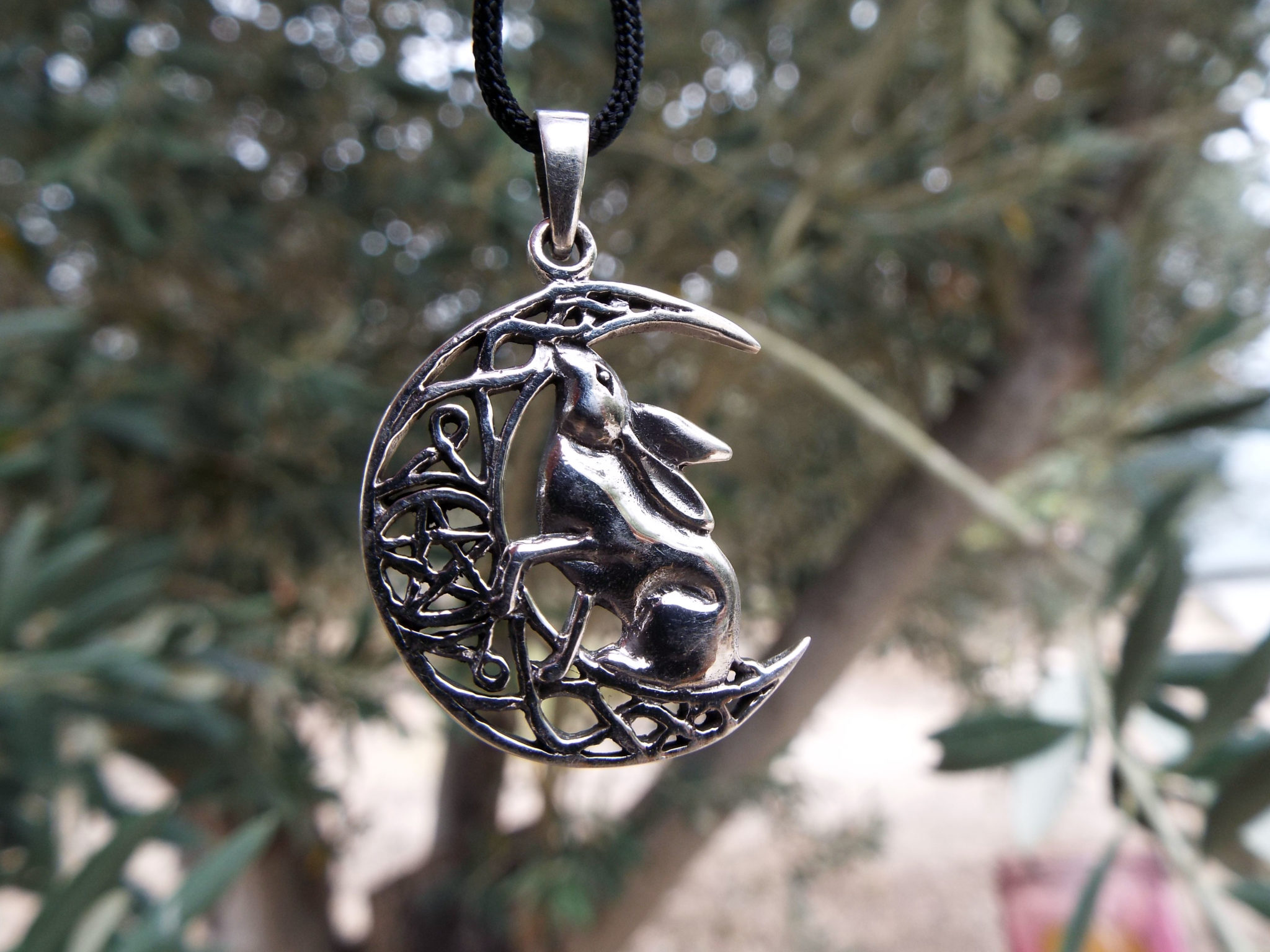 Embrace the rabbit’s amazing qualities with this handmade piece! It’s made of sterling silver 925 and depicts a detailed crescent moon and rabbit.