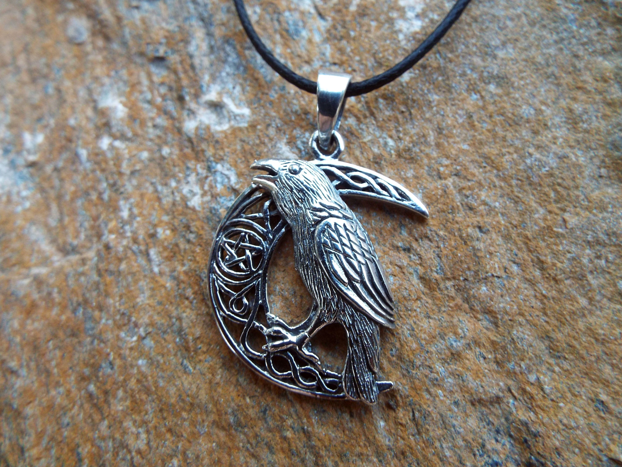 Sterling Silver Raven Moon Pendant Crow Handmade Jewelry