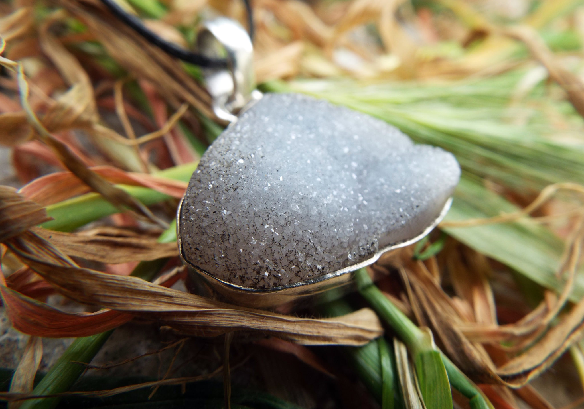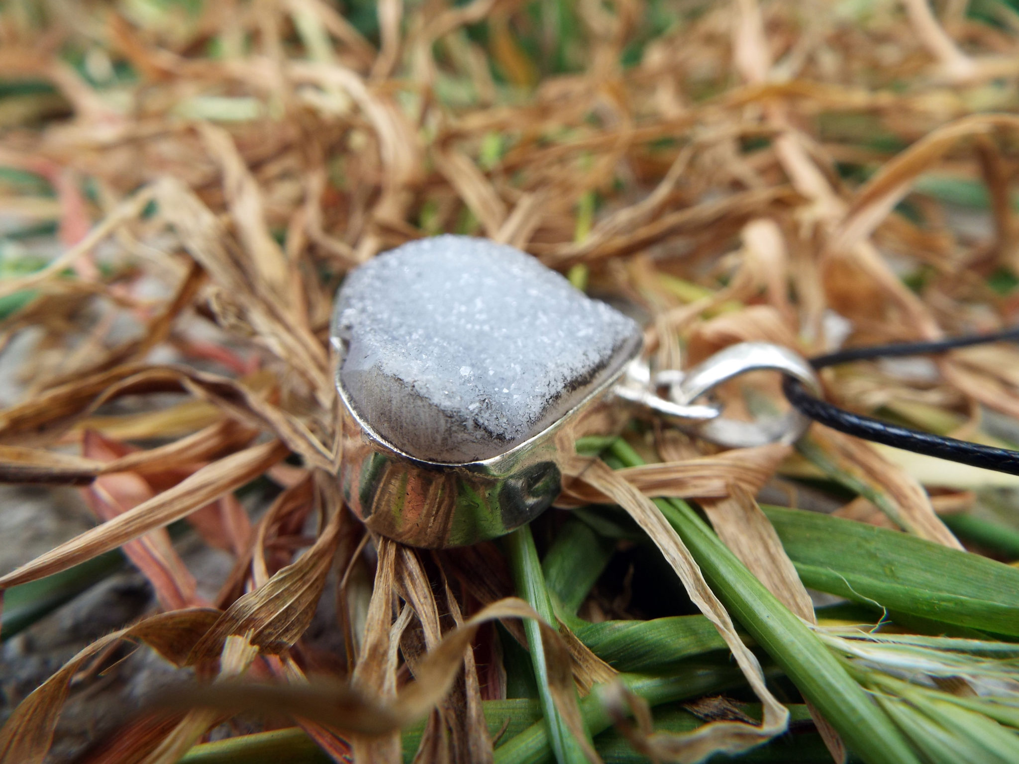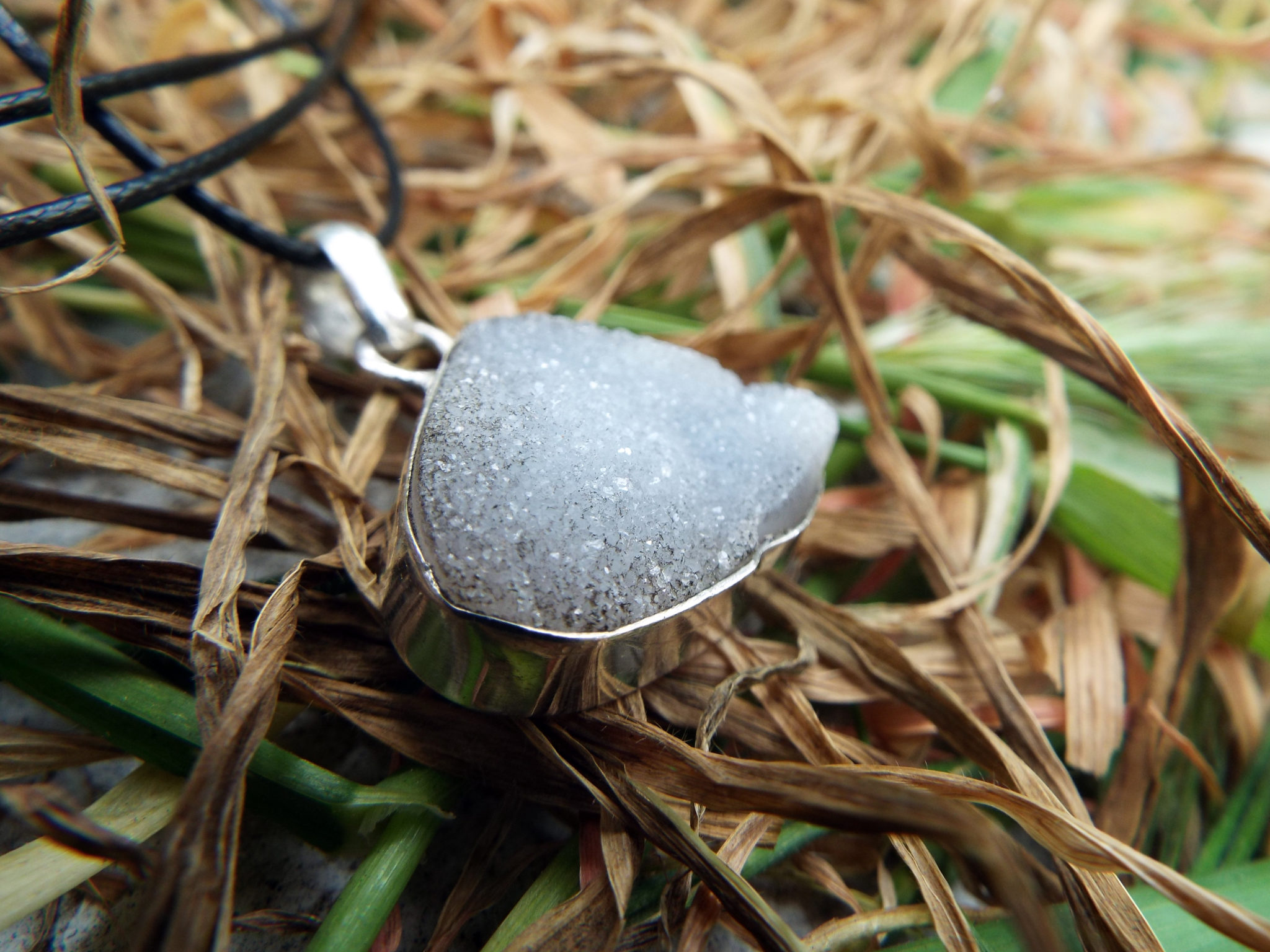 Sterling Silver Raw Crystallized Agate Geode Pendant Handmade Jewelry