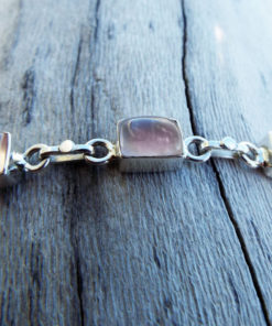The bracelet has a sterling silver adjustable chain with a clasp.