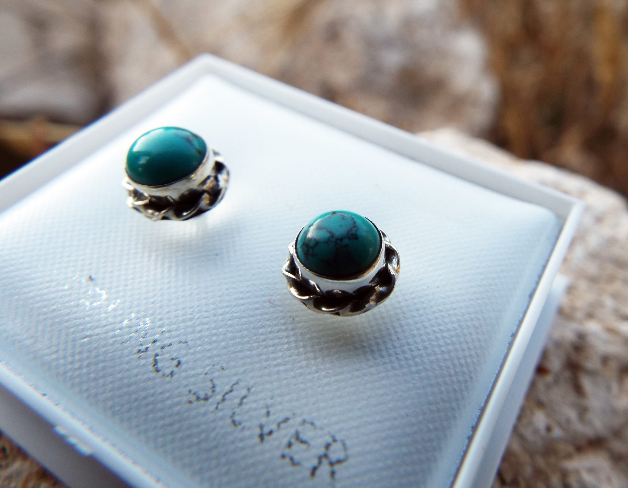 Embrace turquoise’s protection with this stunning pair of studs! They’ve been handmade from sterling 925 silver and brilliant turquoise. The earrings have an easy sterling silver ‘butterfly’ fastening.