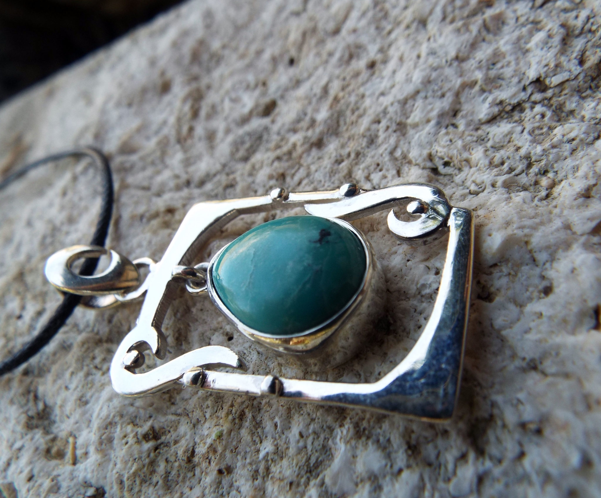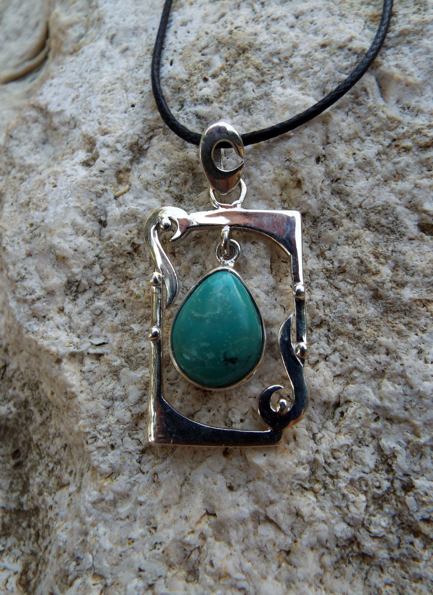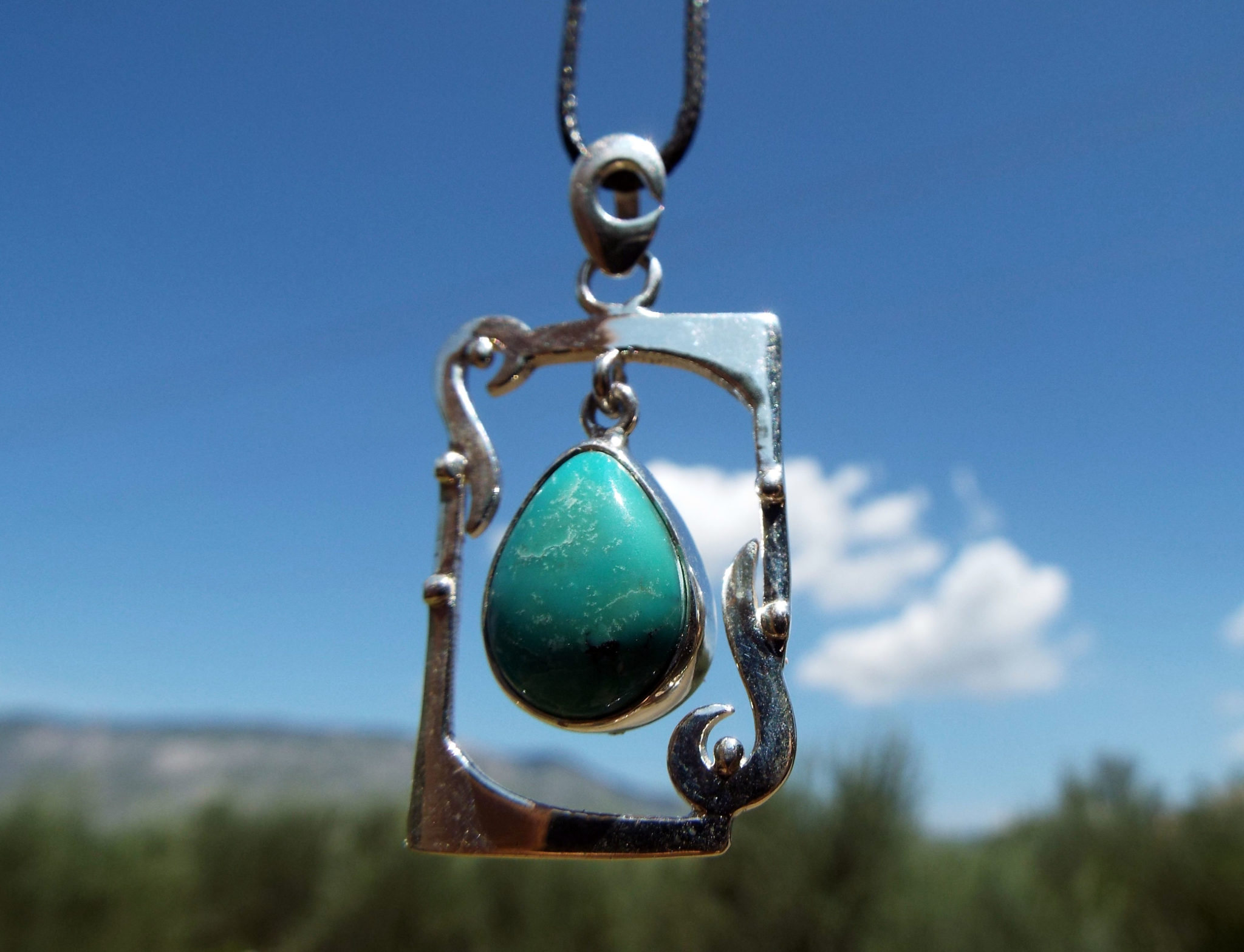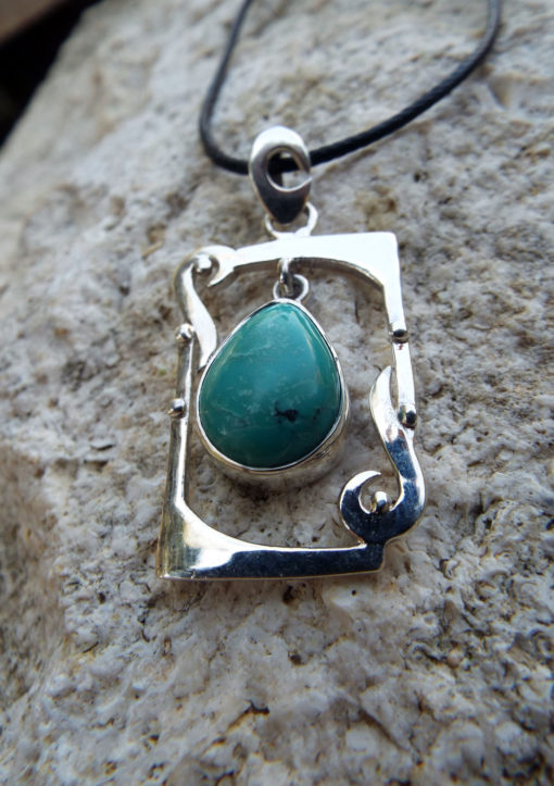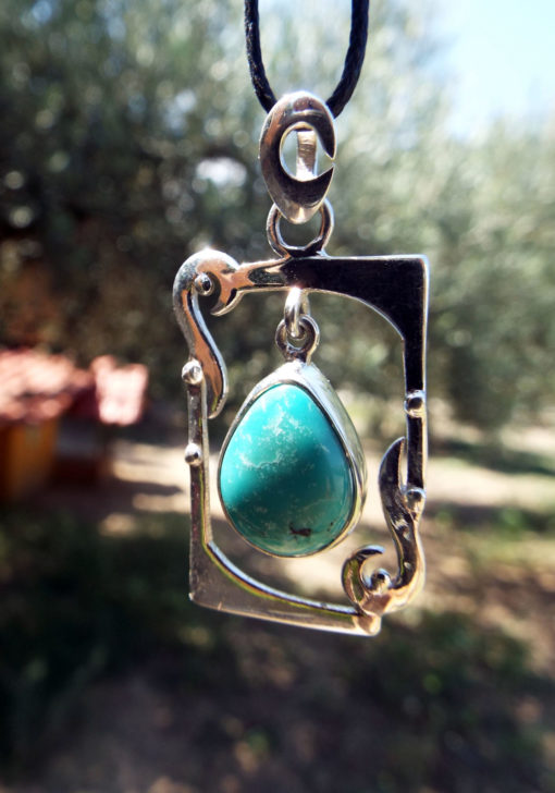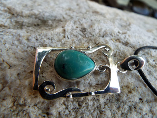 Embrace turquoise’s amazing qualities with this handmade pendant! It’s made of sterling silver 925 which holds a brilliant blue turquoise gemstone.