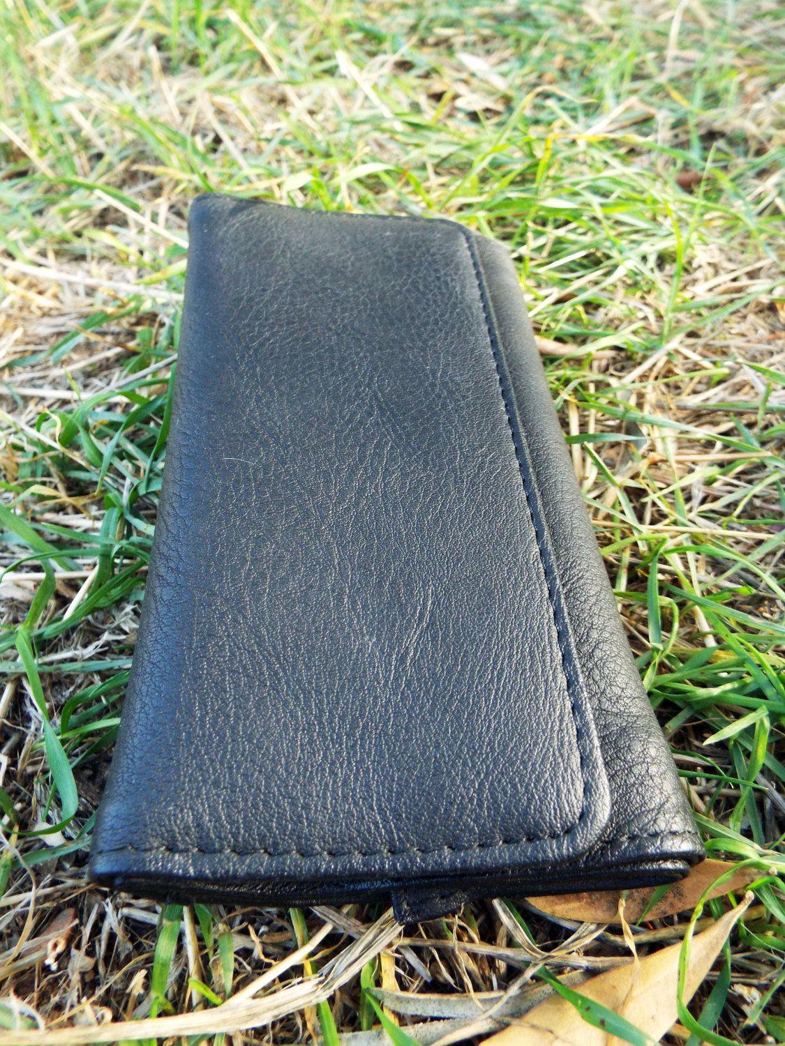 This is a handmade vegan leather tobaco pouch.