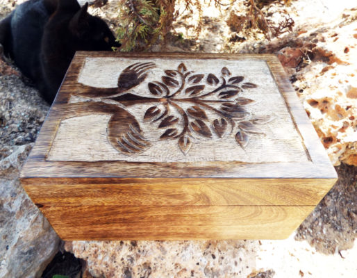 This is very special and would make a lovely gift for a loved one, as it’s perfect for storing personal, special items. The chest is especially ideal for pieces of jewelry as there is space to store your favourite pieces. It definitely makes a beautiful addition to one’s home decoration, especially if you appreciate handmade woodwork. Much effort and artistic energy has been put into the making of this piece and its positive energies will surely be passed on to the new owner.