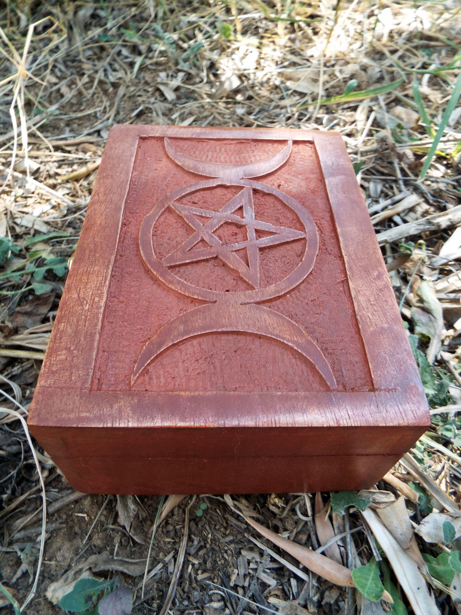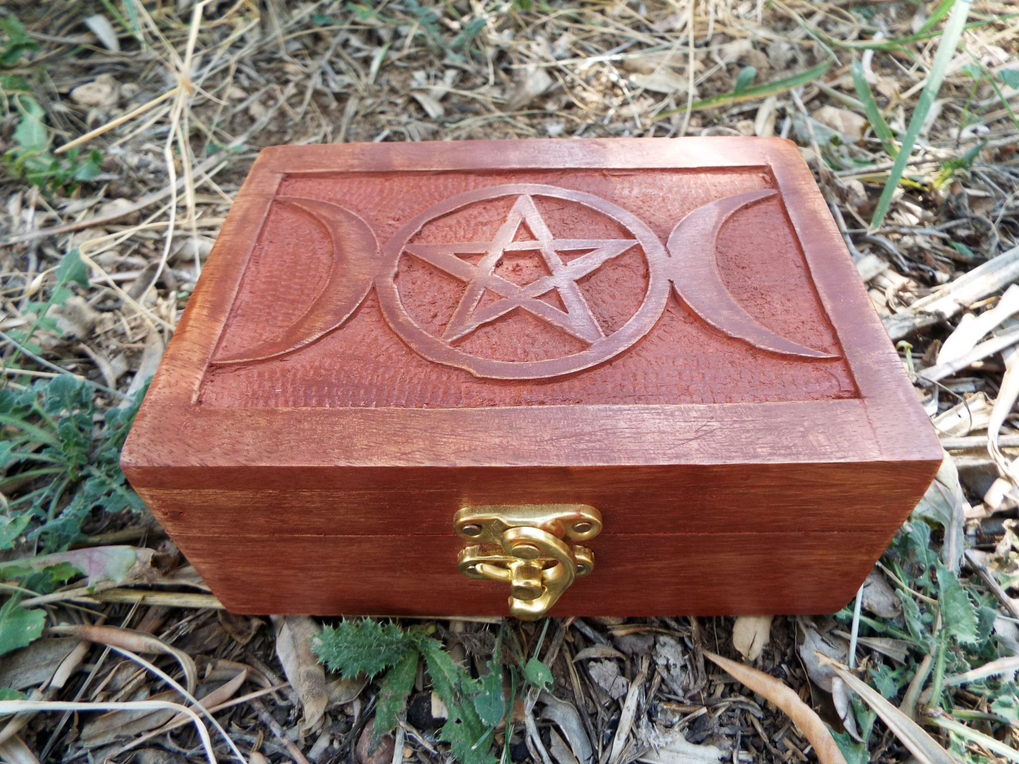 Embrace the protection of the pentagram and triple moon symbol with this handmade box!