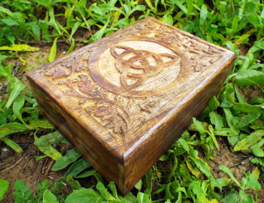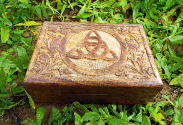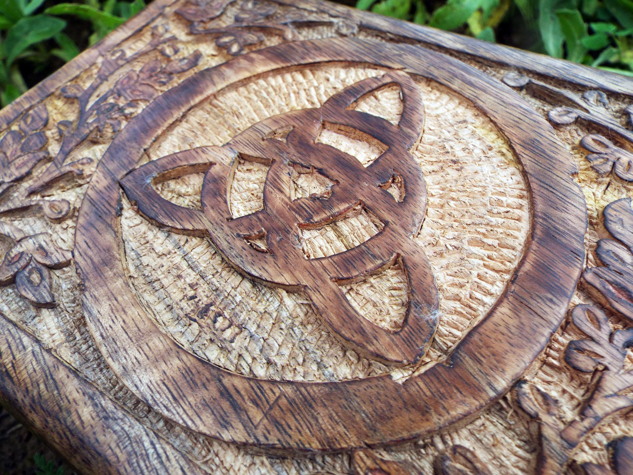 Triquetra Box Wooden Symbol Handmade Carved Celtic Chest Trinket Mango Tree Wood