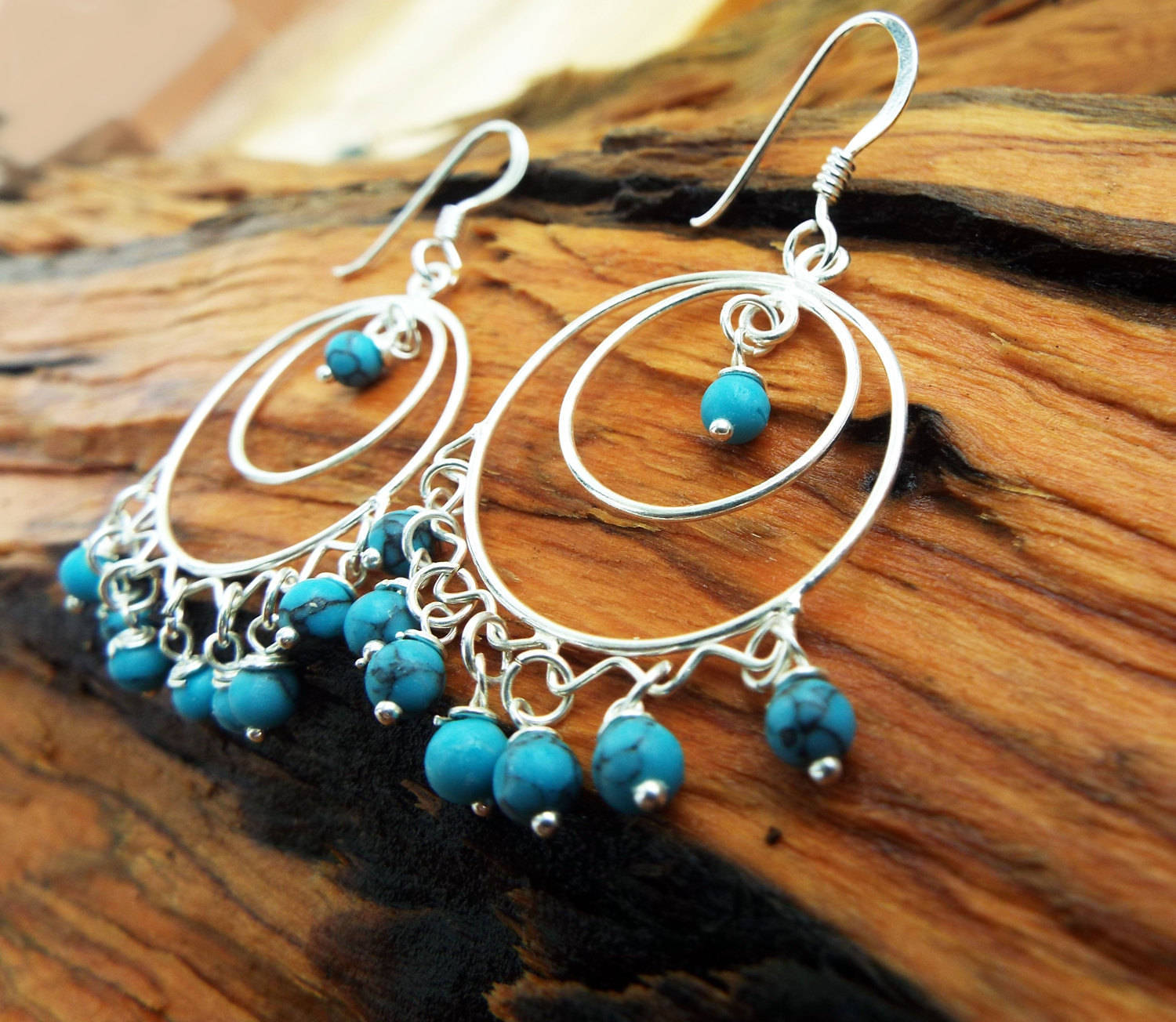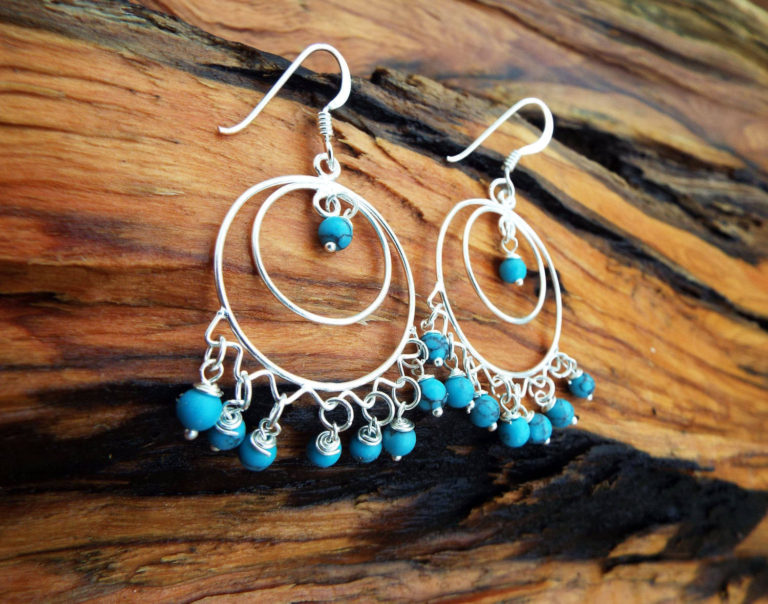 Embrace turquoise’s protection with this stunning pair of drop earrings! They’ve been handmade from sterling 925 silver and brilliant turquoise.