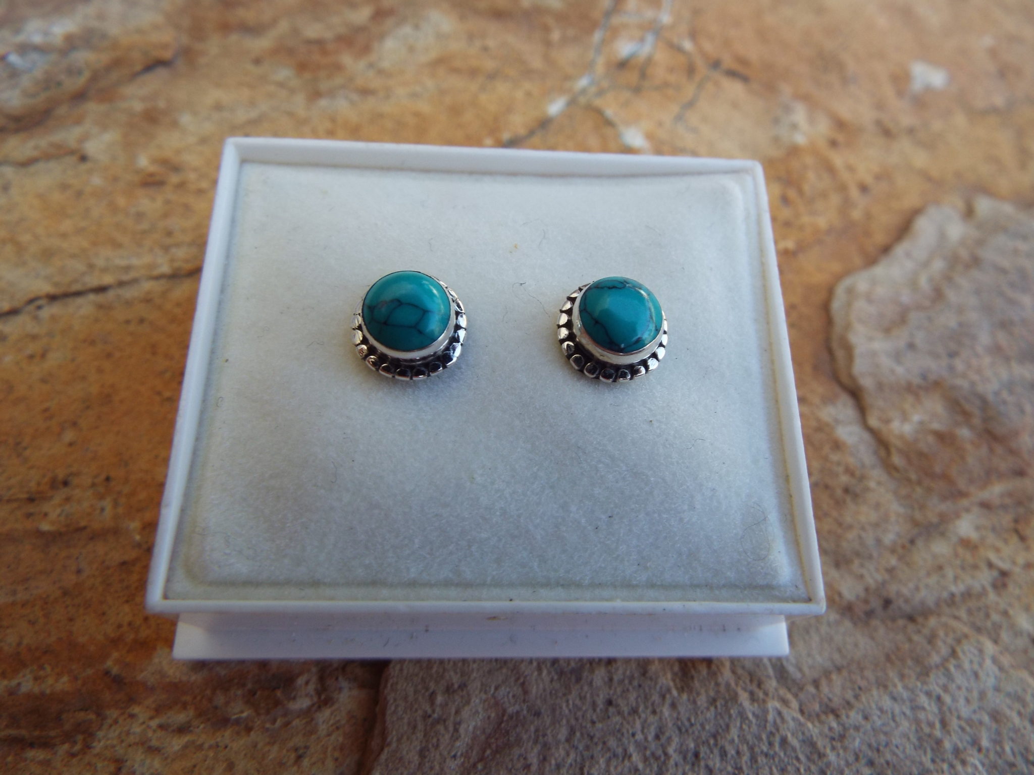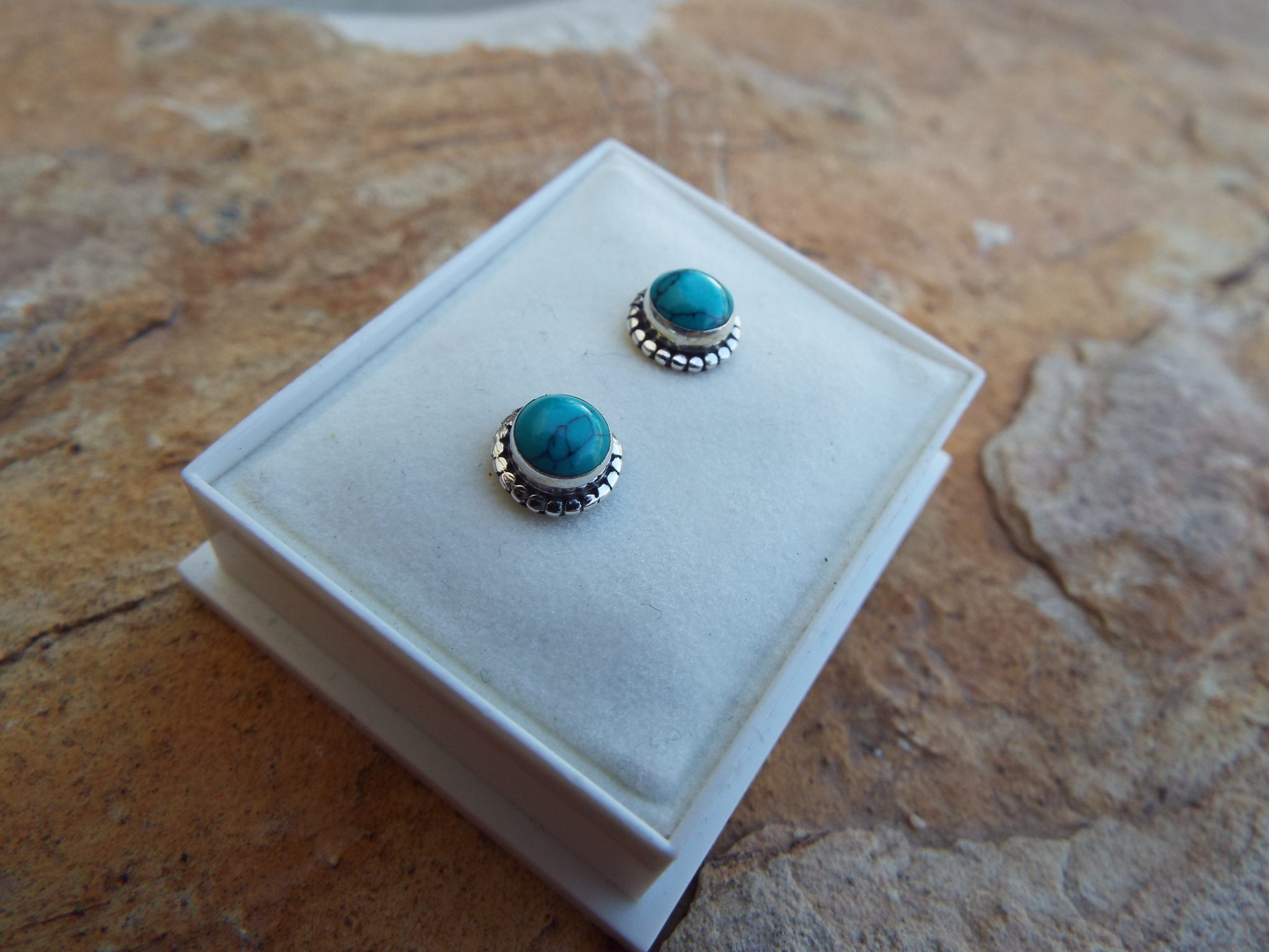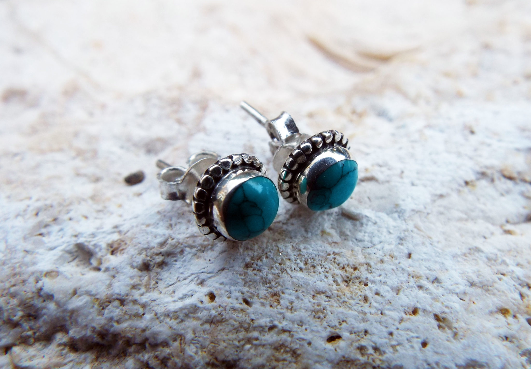 Embrace turquoise’s protection with this stunning pair of studs! They’ve been handmade from sterling 925 silver and brilliant turquoise. The earrings have an easy sterling silver ‘butterfly’ fastening.