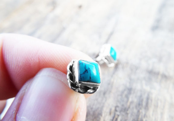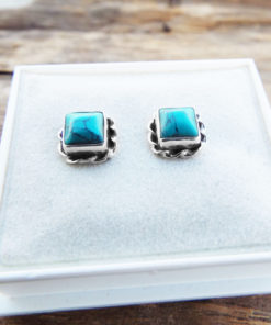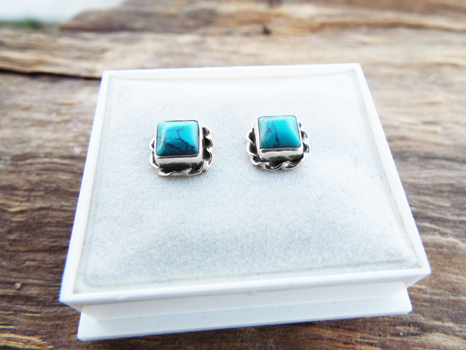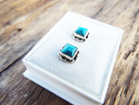 Embrace turquoise’s protection with this stunning pair of studs! They’ve been handmade from sterling 925 silver and brilliant turquoise. The earrings have an easy sterling silver ‘butterfly’ fastening. The measurements are as follows: