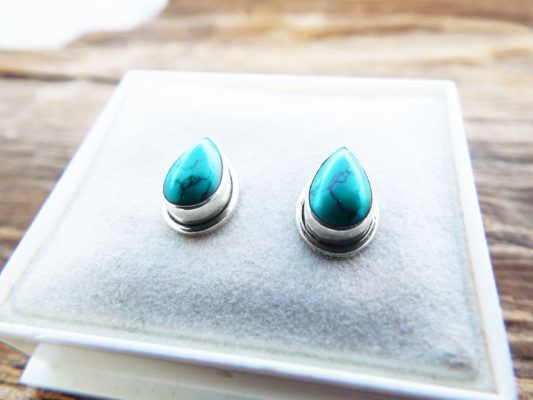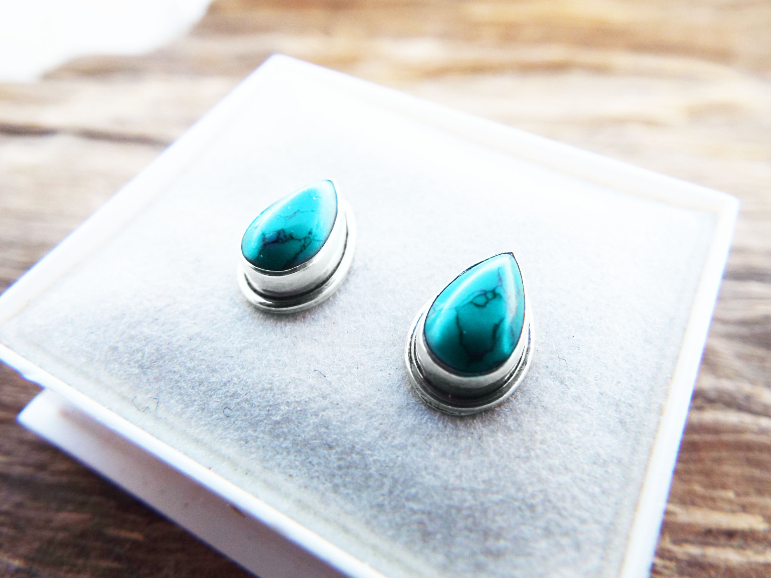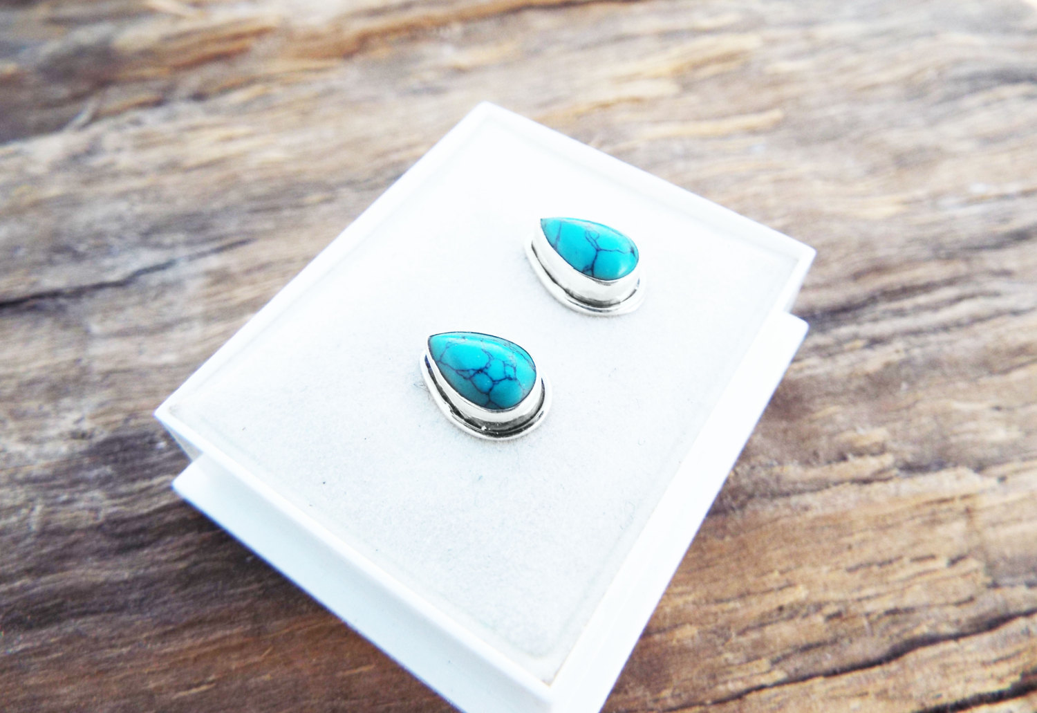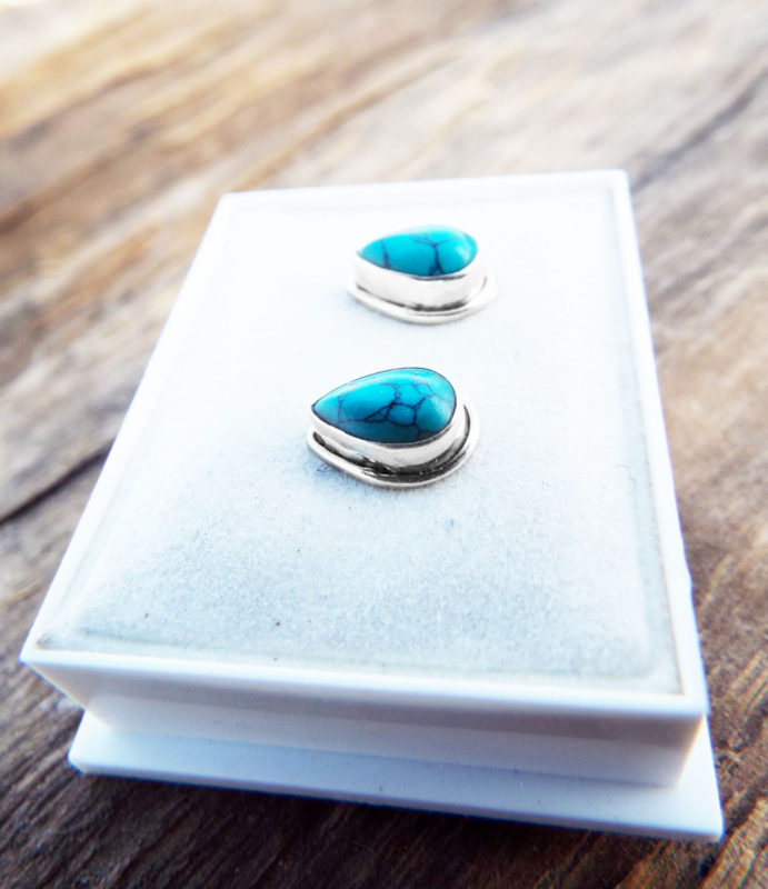 Embrace turquoise’s protection with this stunning pair of studs! They’ve been handmade from sterling 925 silver and brilliant turquoise. The earrings have an easy sterling silver ‘butterfly’ fastening. The measurements are as follows:
