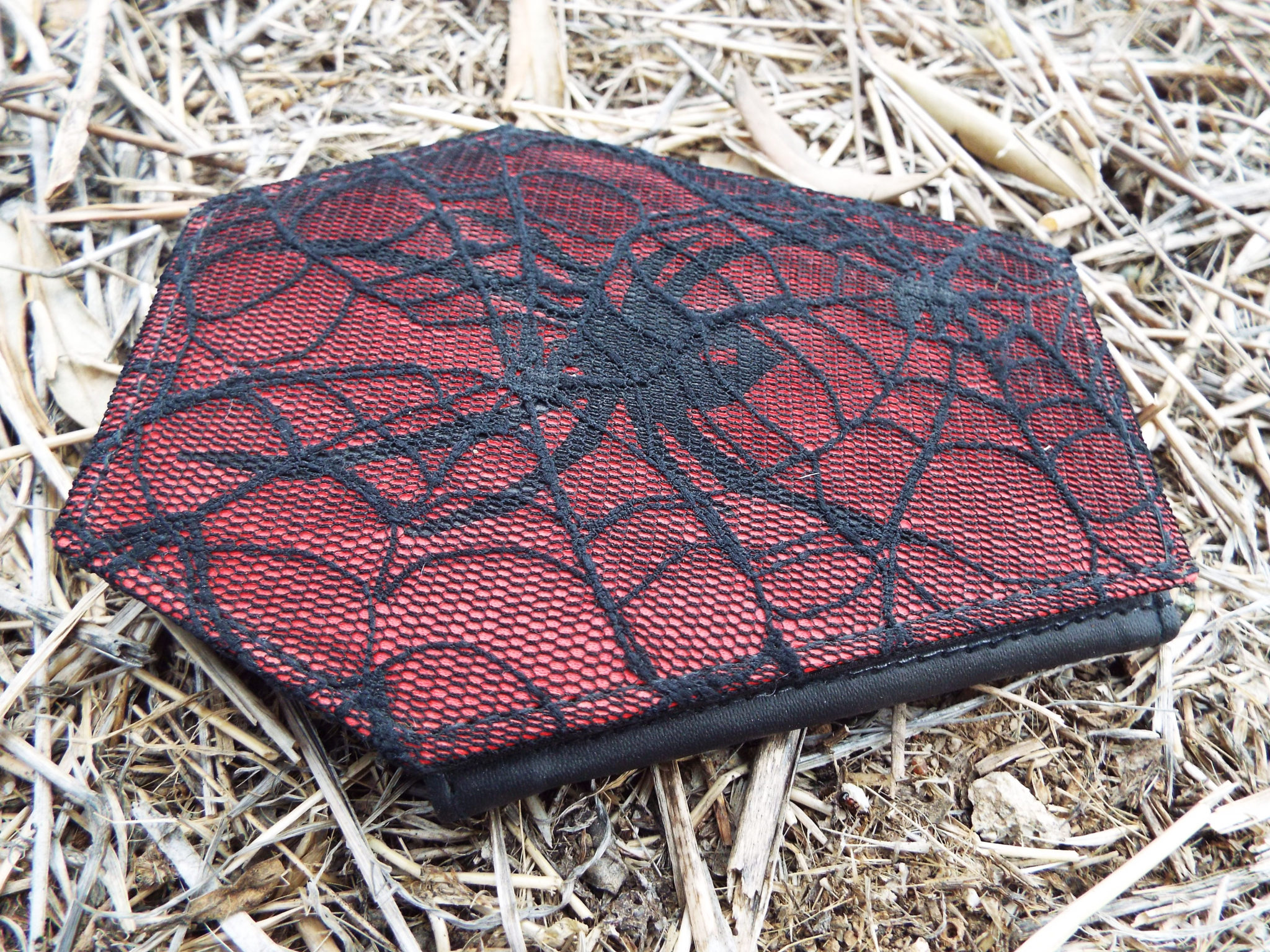 Wallet Purse Vegan Leather Spider Handmade Red Gothic Dark Pouch Case Cruelty Free
