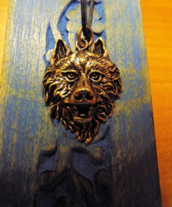 This handmade pendant is made of copper and has very intricate patterns. The wolf’s expression is wild yet calm. It is a 3-dimensional piece from all angles which makes it quite special. The measurements are as follows: